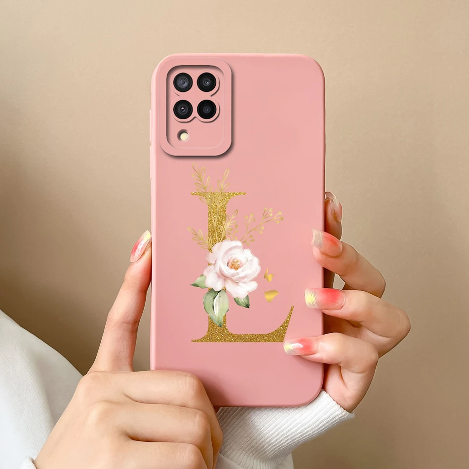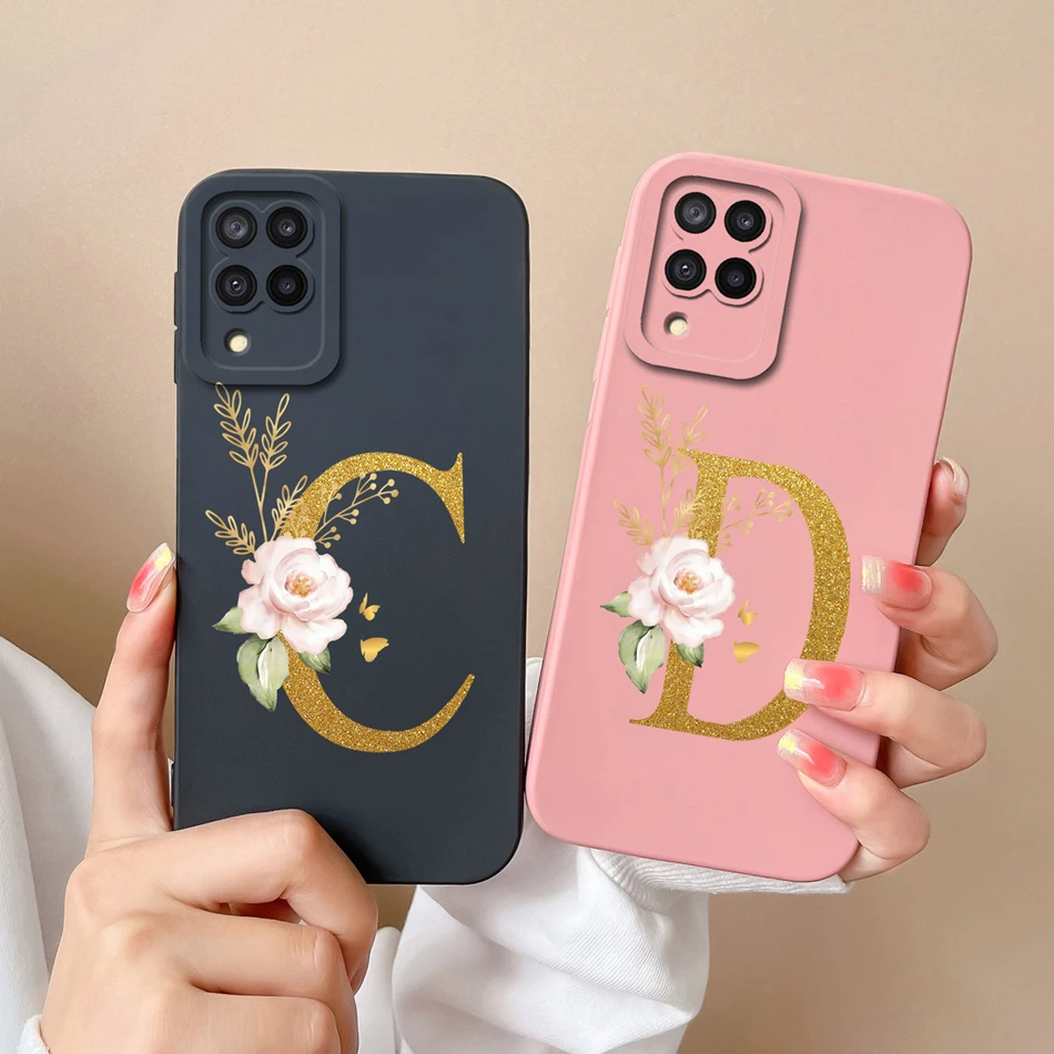Comprar Funda elegante para Samsung M22 M32 4G 5G Rose Letter Phone Shell Lens Cover, Galaxy M32 M22 Liquid Silicone Bumper