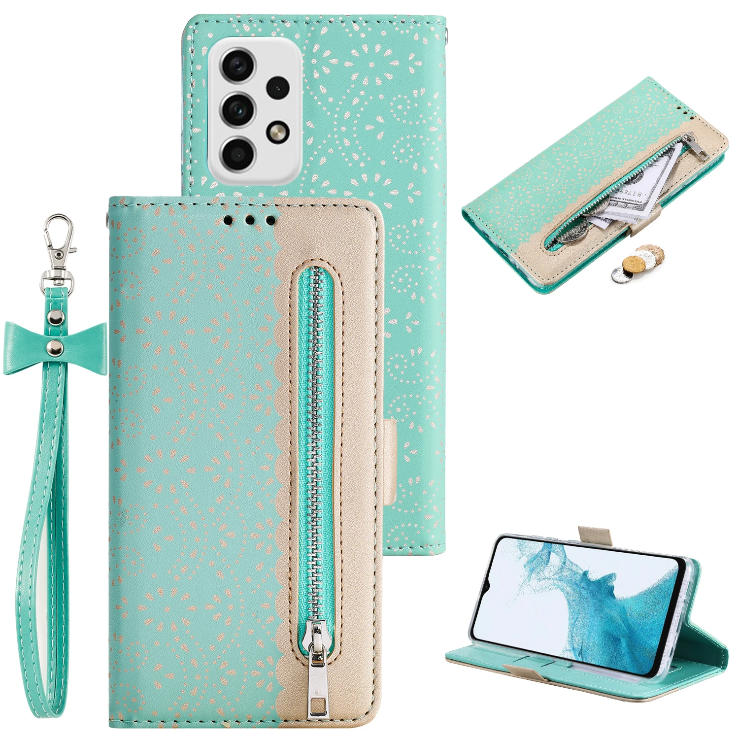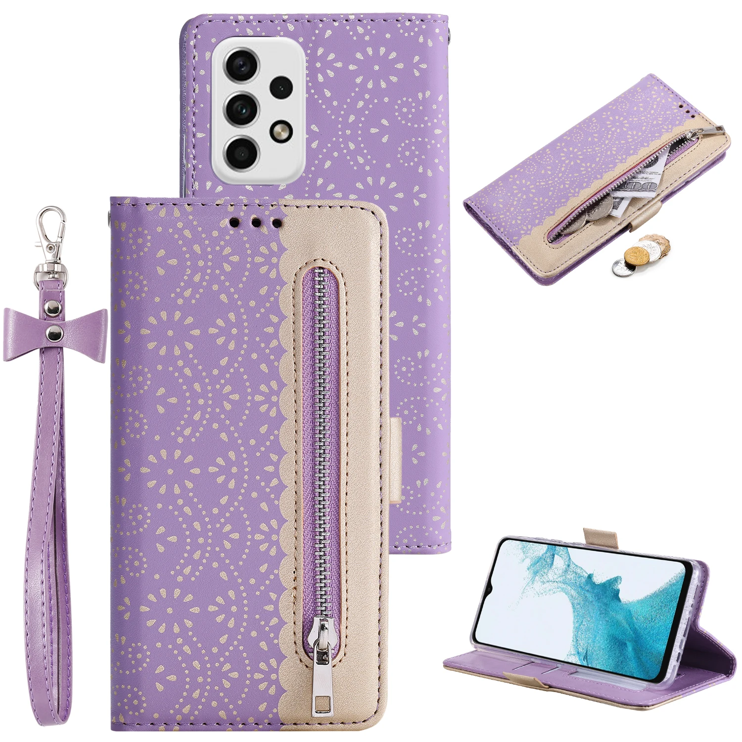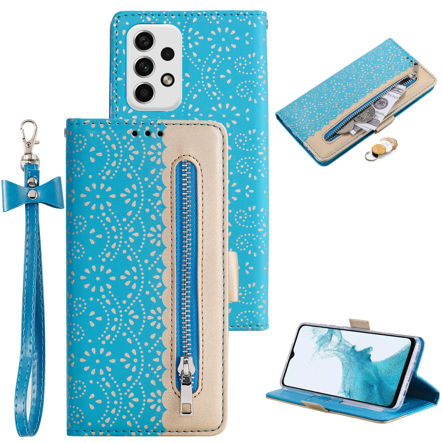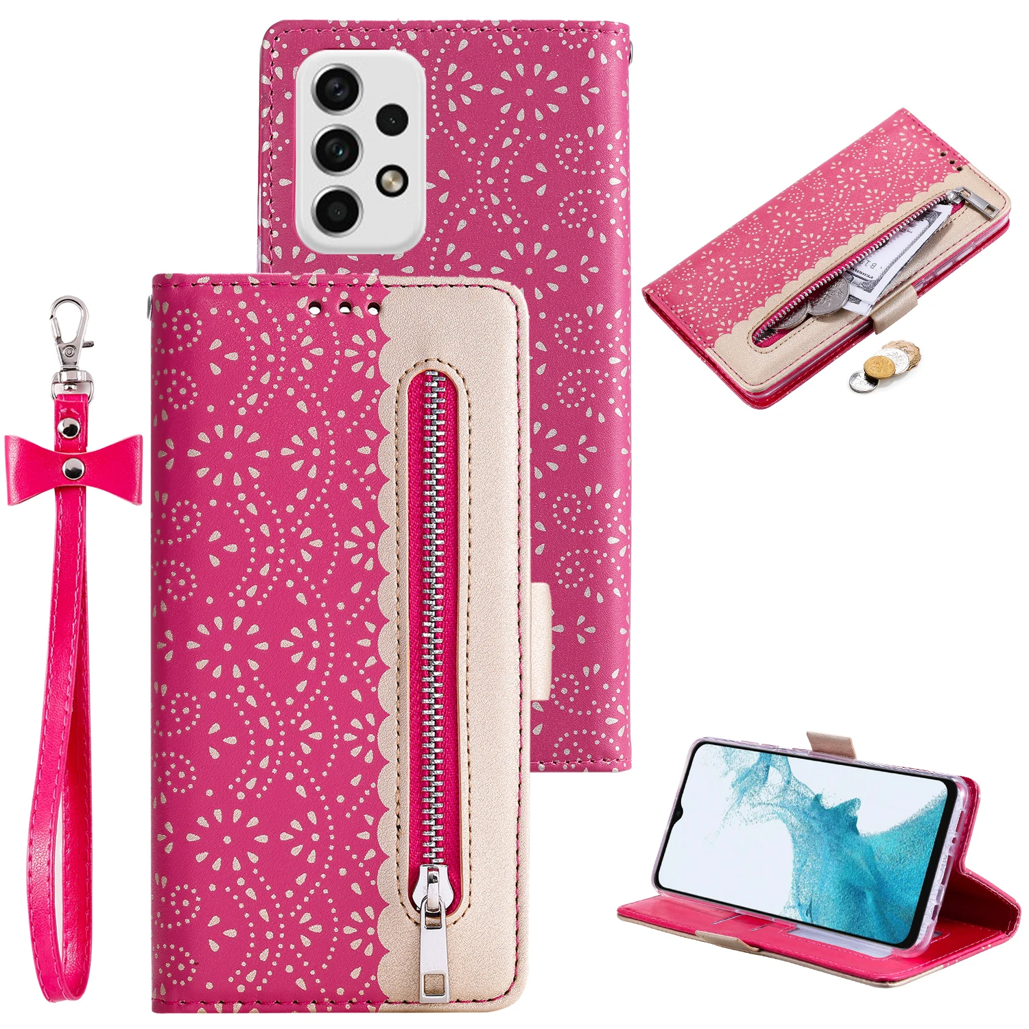 Comprar Funda de encaje tipo billetera de cuero con cremallera para Samsung A23 S23 Ultra S22 Plus S21 FE A54 A14 A34 tarjetero funda con soporte magnético Fundas