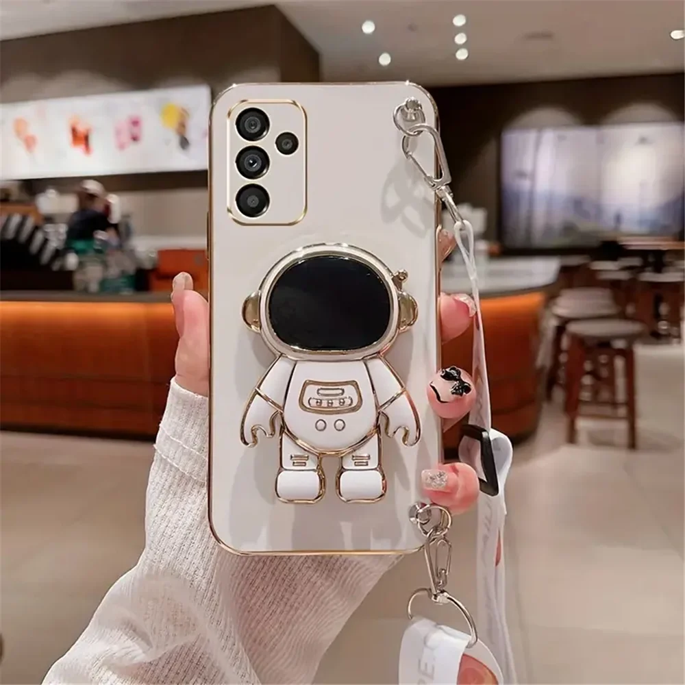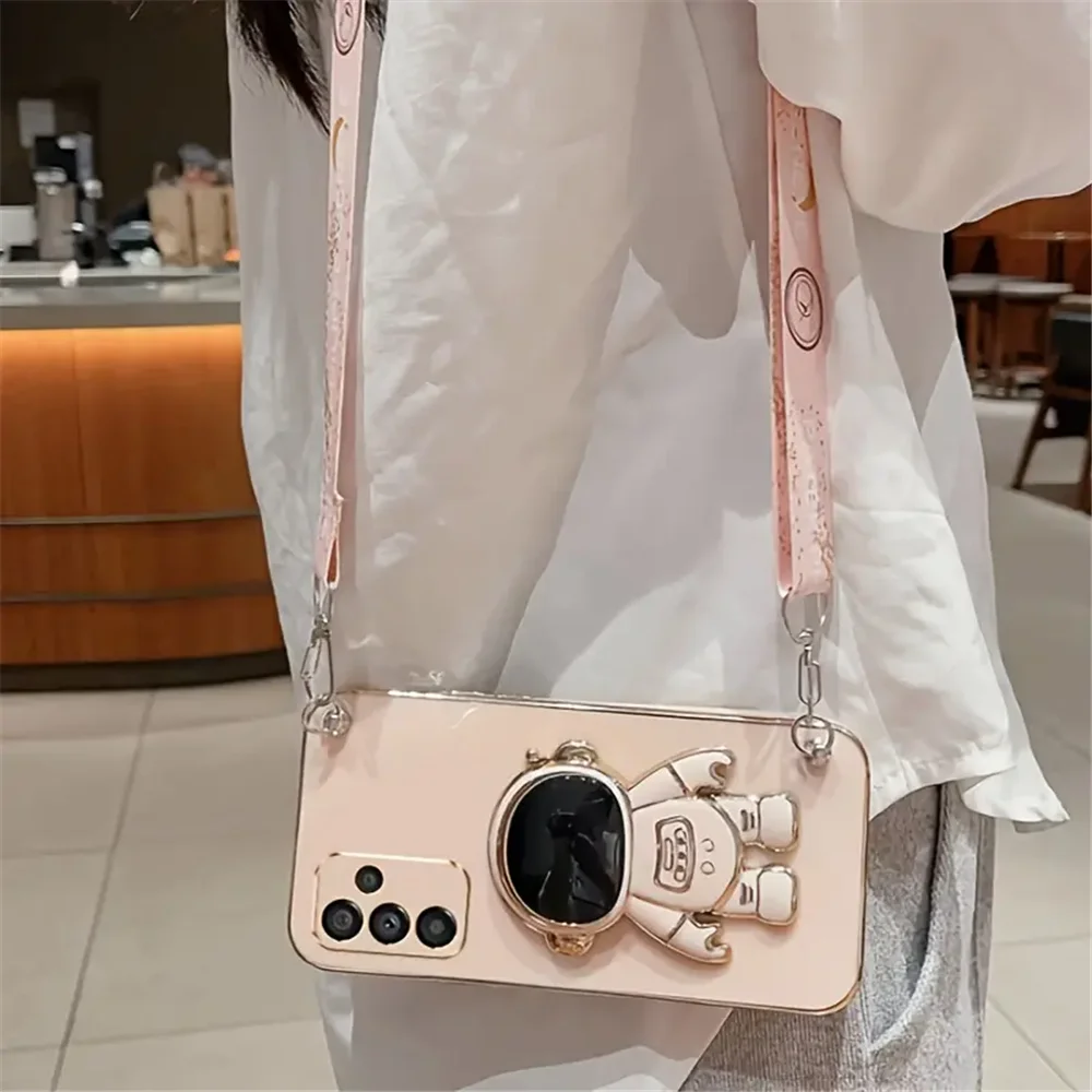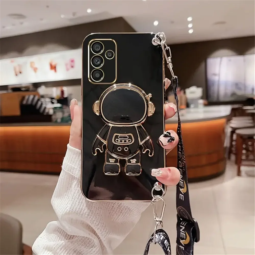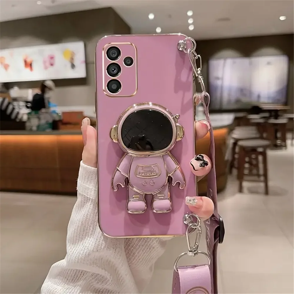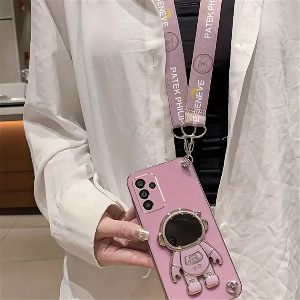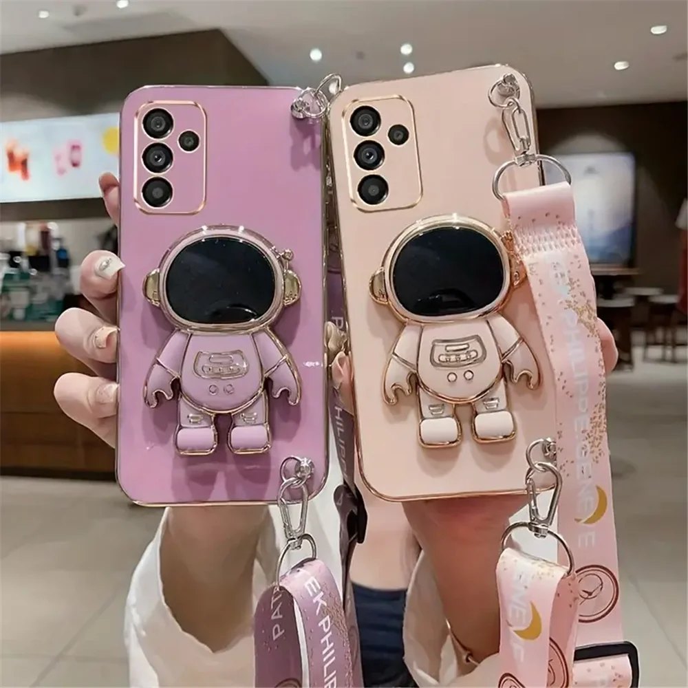 Comprar Funda enchapada con cordón cruzado para Samsung, cubierta de soporte de silicona con soporte de astronauta, C55, M14, M54, M13, M33, M53, M22, M32, M52, M31, M51