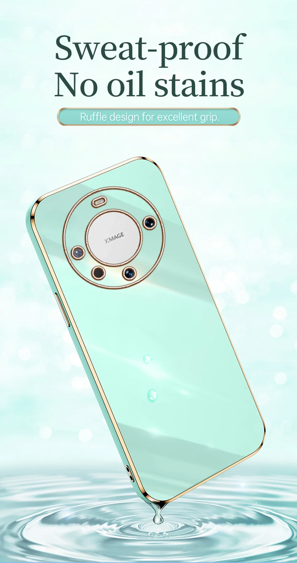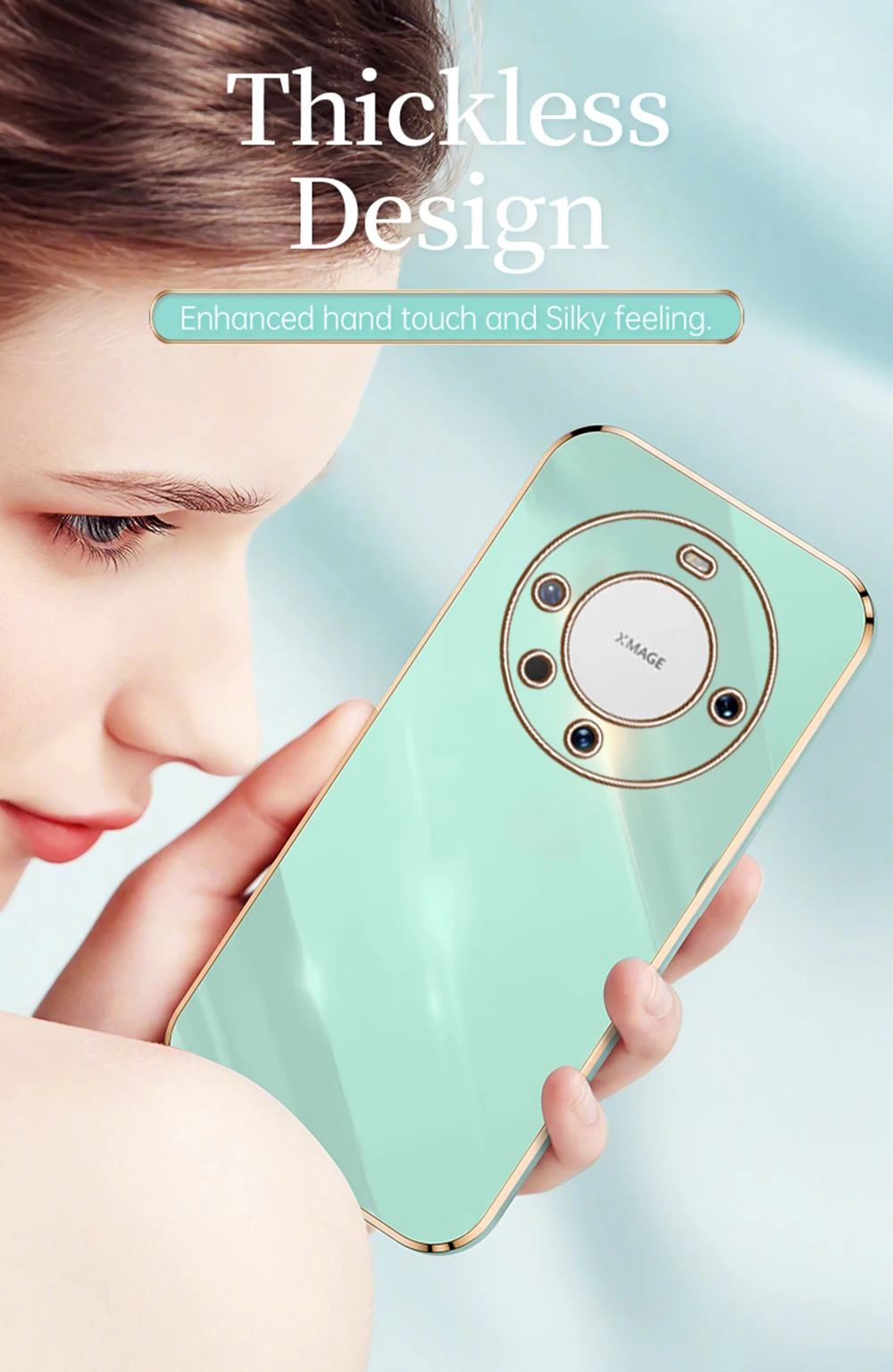 Comprar Funda enchapada para Huawei Mate 60 Pro, borde recto suave, parachoques cuadrado, Huawei Mate60, Mate60Pro, 60Pro, cubierta trasera a prueba de golpes