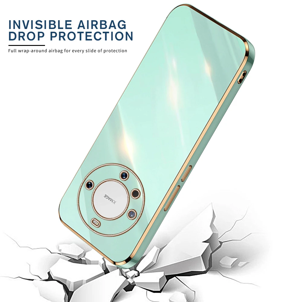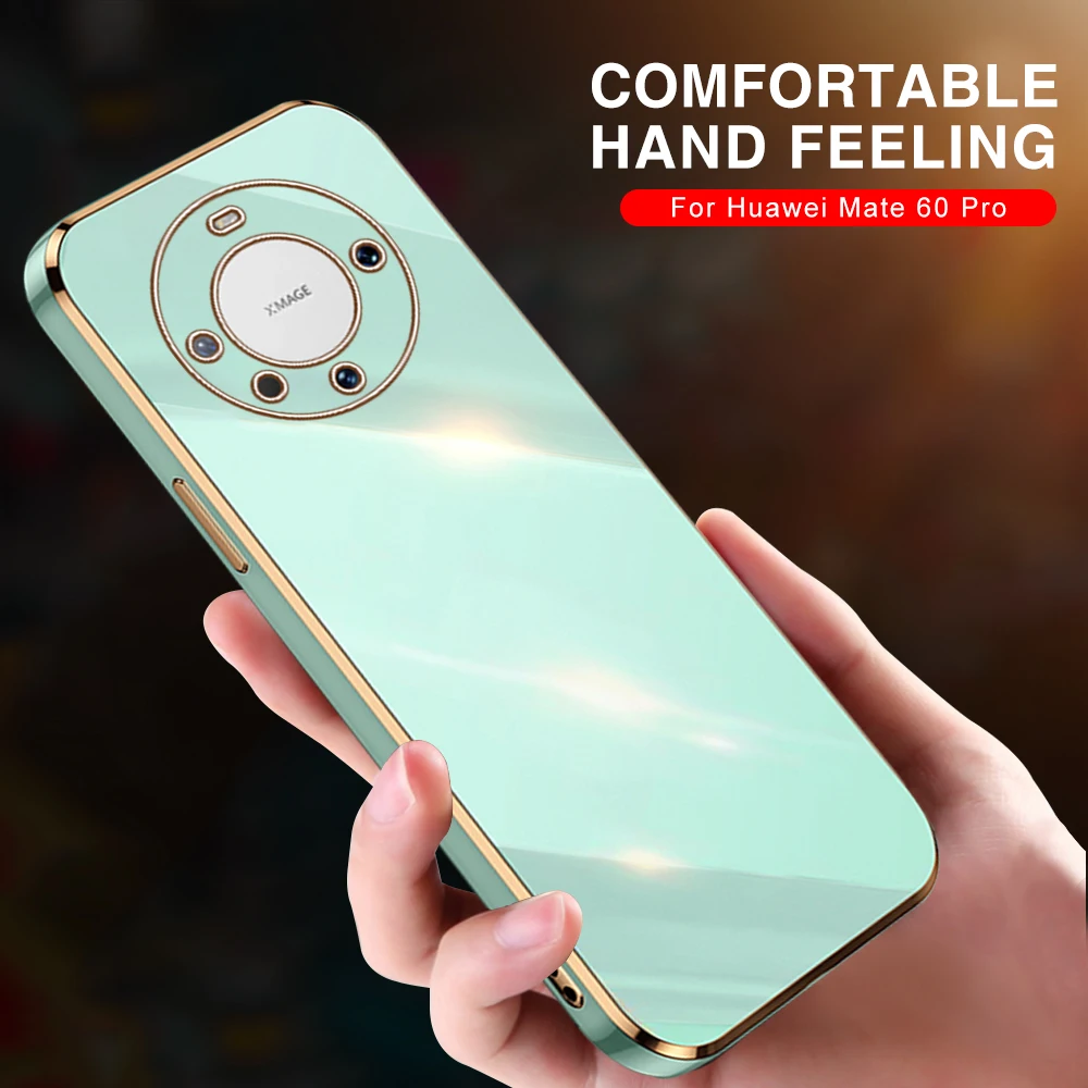 Comprar Funda enchapada para Huawei Mate 60 Pro, borde recto suave, parachoques cuadrado, Huawei Mate60, Mate60Pro, 60Pro, cubierta trasera a prueba de golpes