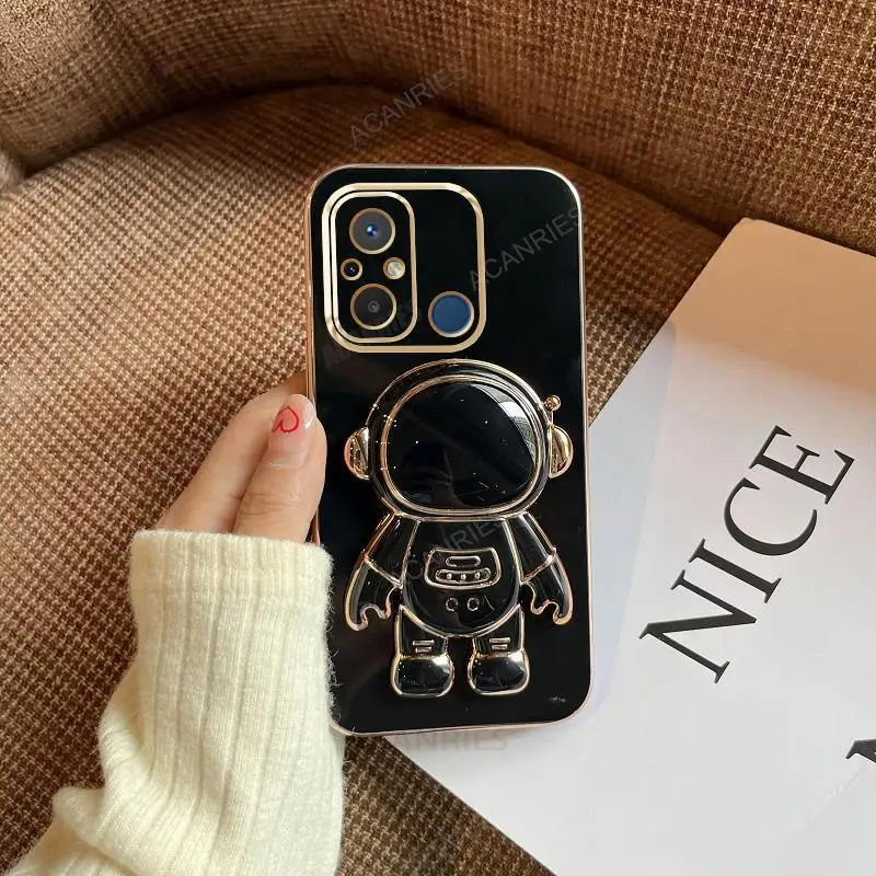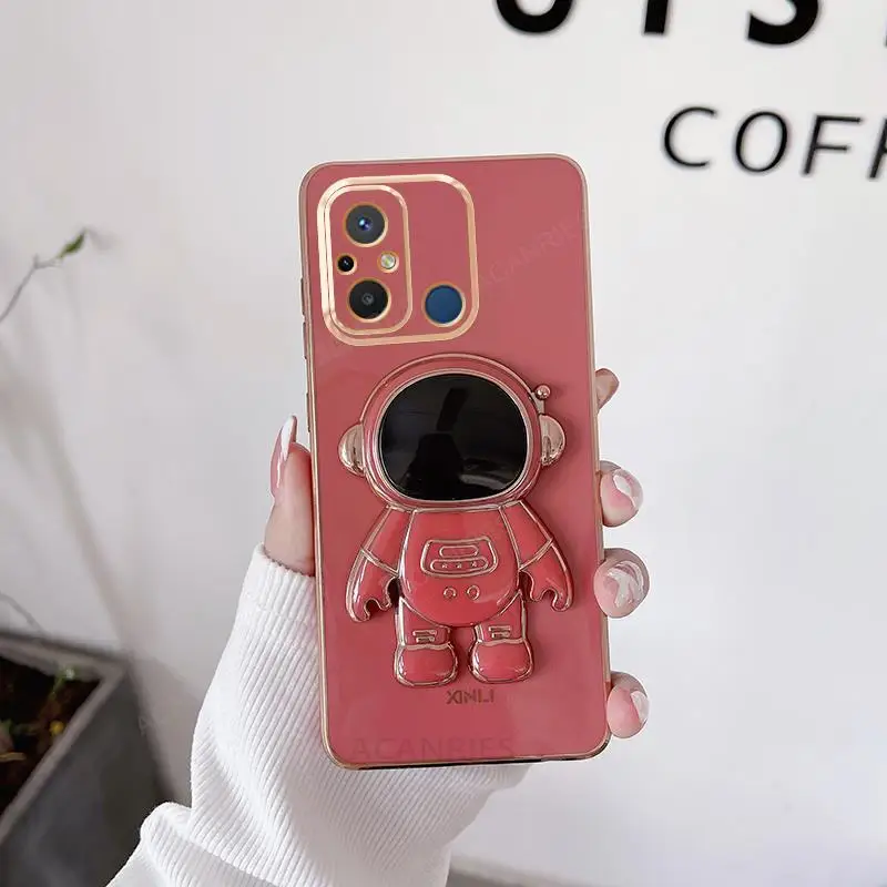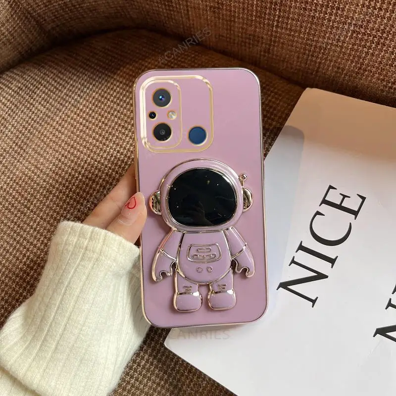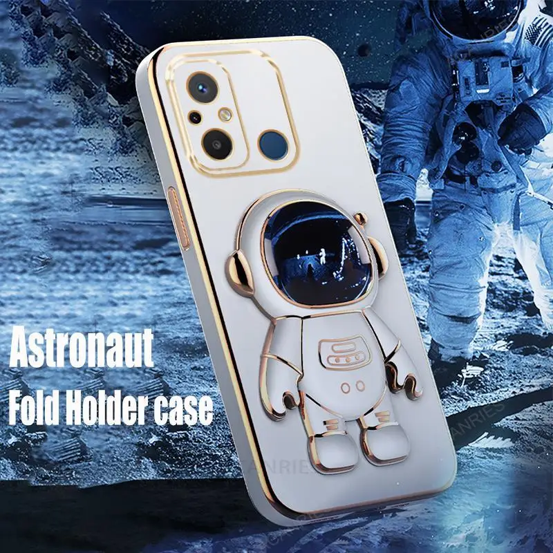 Redmi12c Astronaut Holder Luxury Plating Case On For Xiaomi Redmi 12c 10c 9a 9c 10a A1 Plus Silicone Stand Cover Mi Poco C40 C55