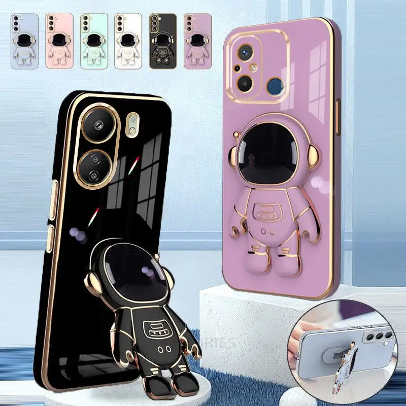 Redmi13c Astronaut Holder Luxury Plating Case On For Xiaomi Redmi 13c 12c 12 10 10a 10c 4g A1 A2 Plus 9a 9c Silicone Stand Cover