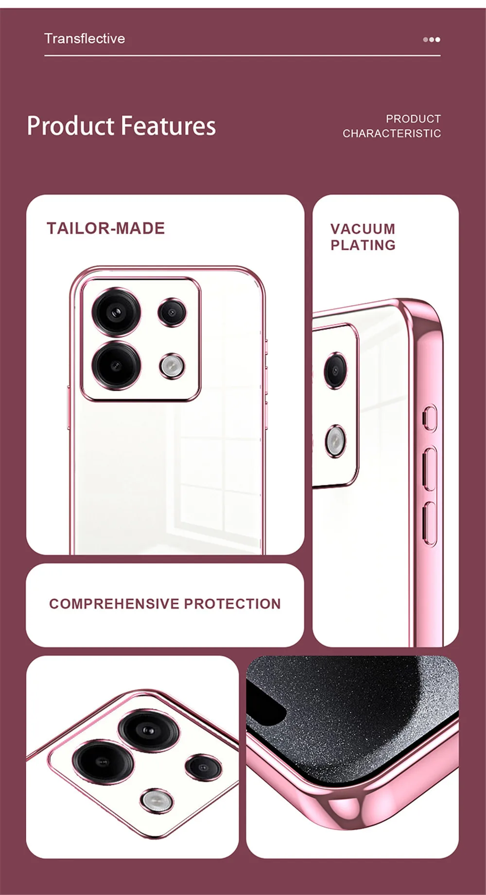 Funda de lujo chapada para Xiaomi Redmi Note 13 Pro Plus POCO X6 Pro C65 13T 13 Lite funda de silicona suave transparente Redmi 13C A3 4G