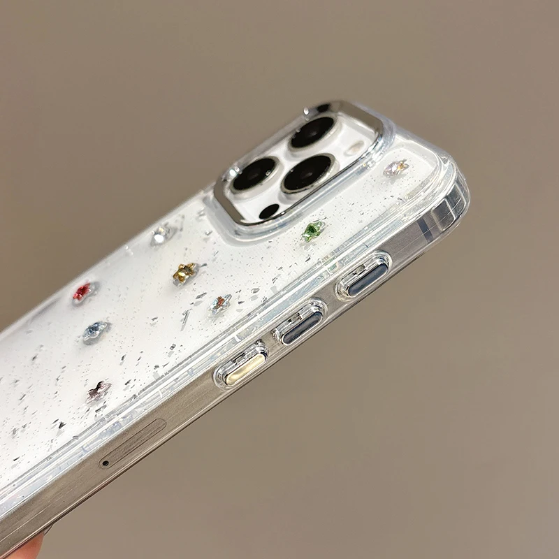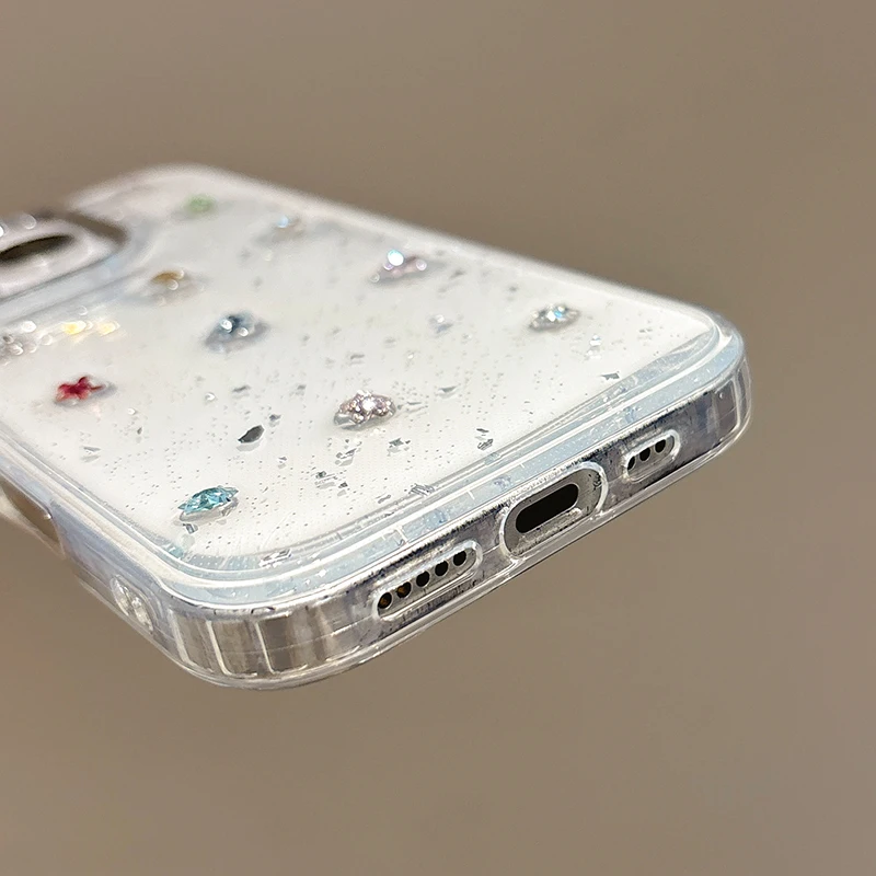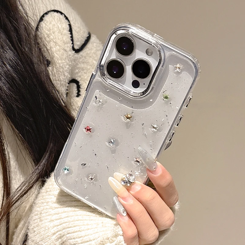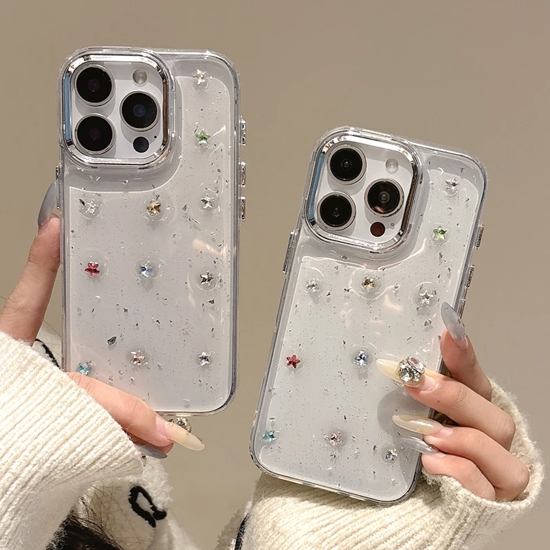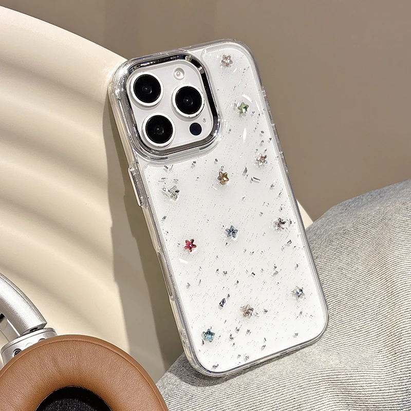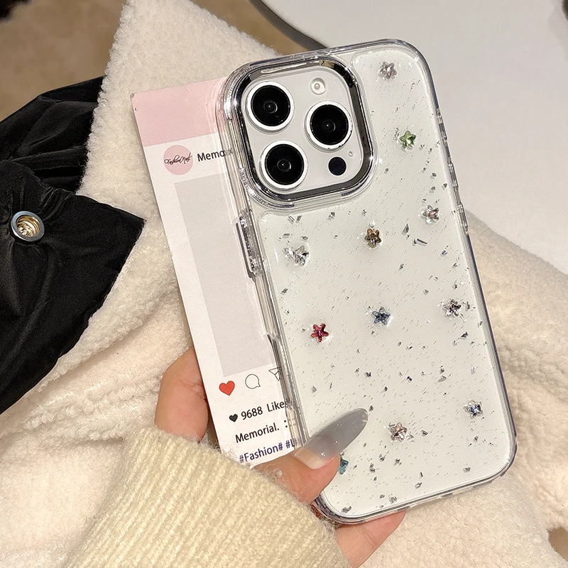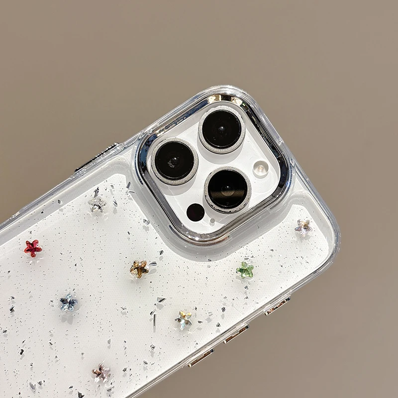 Comprar Funda epoxi con lentejuelas y estrellas coloridas para iPhone 16 Pro Max 15 13 14 11 12, carcasa trasera transparente de TPU para teléfono