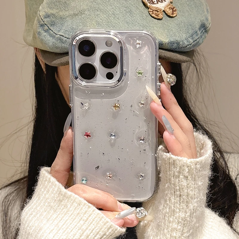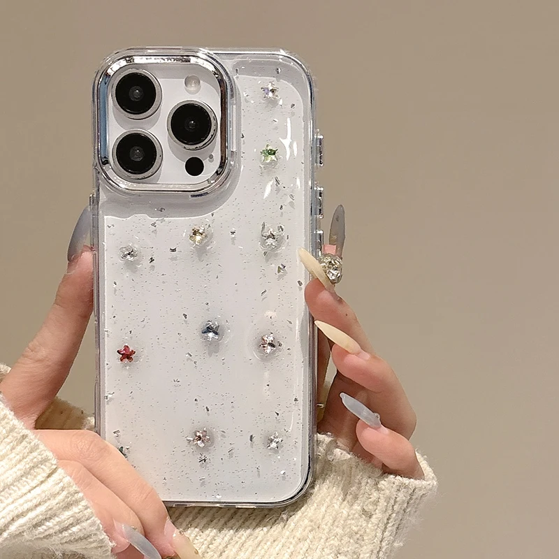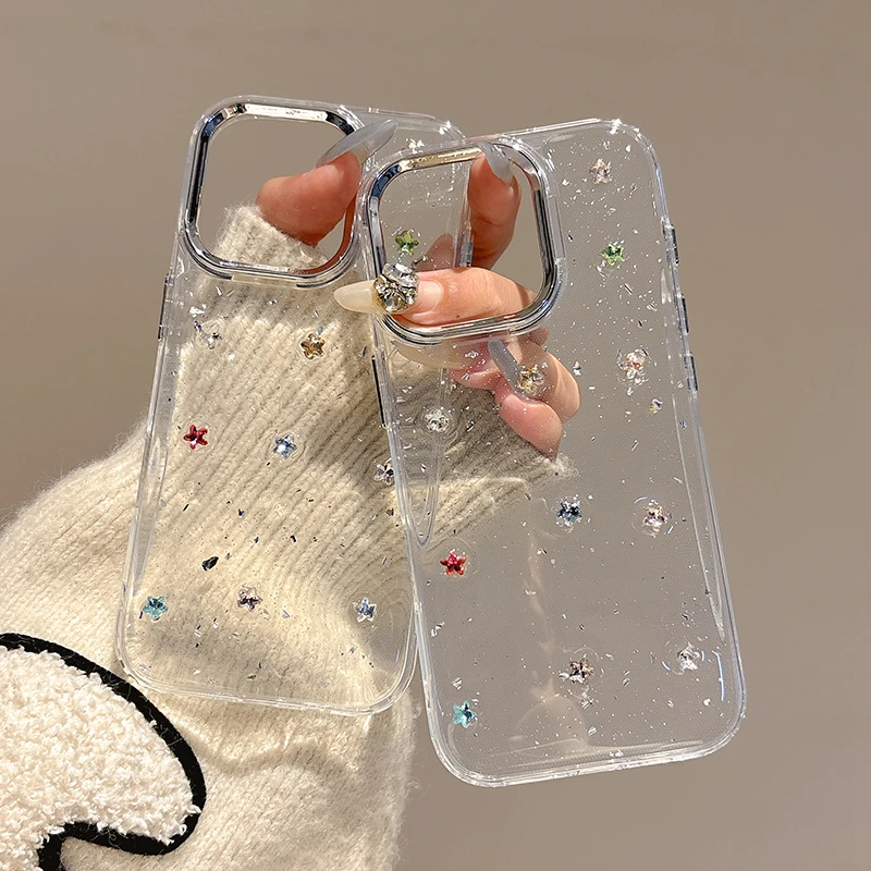 Funda epoxi con lentejuelas y estrellas coloridas para iPhone 16 Pro Max 15 13 14 11 12 carcasa trasera de teléfono de TPU transparente