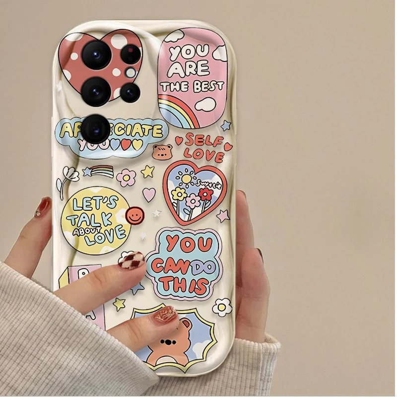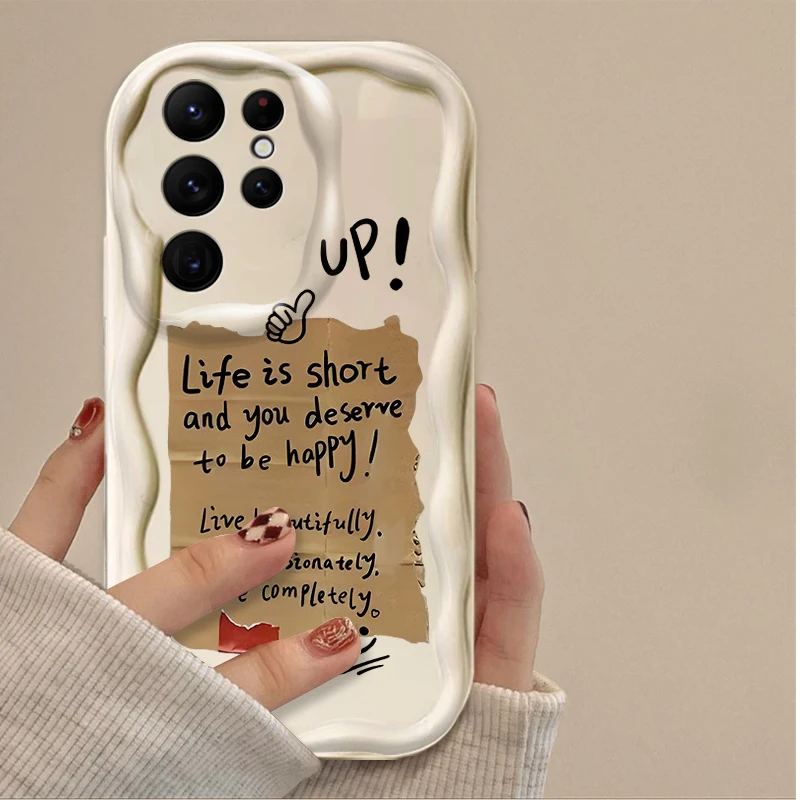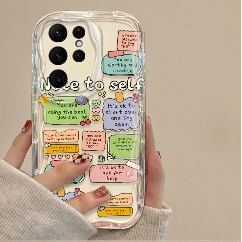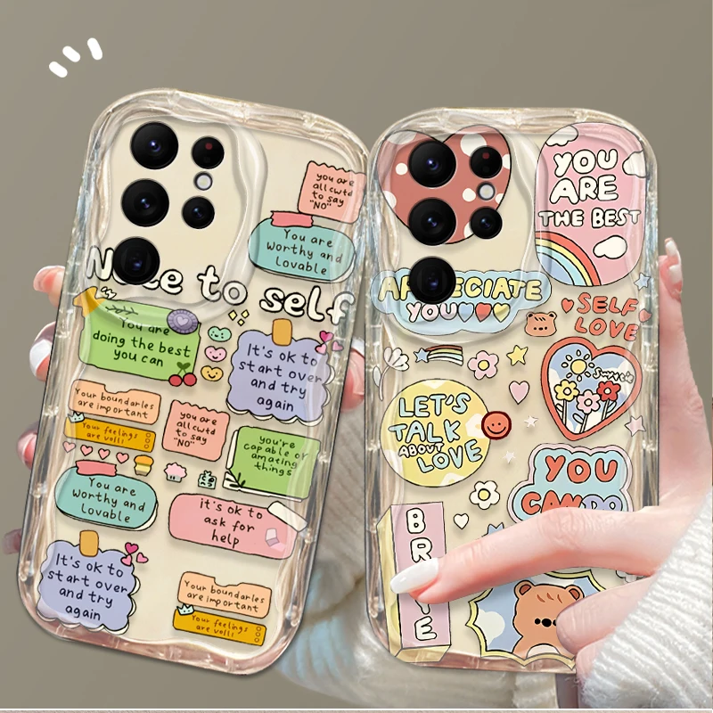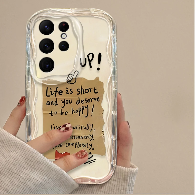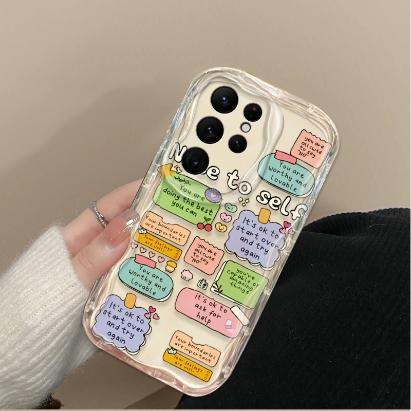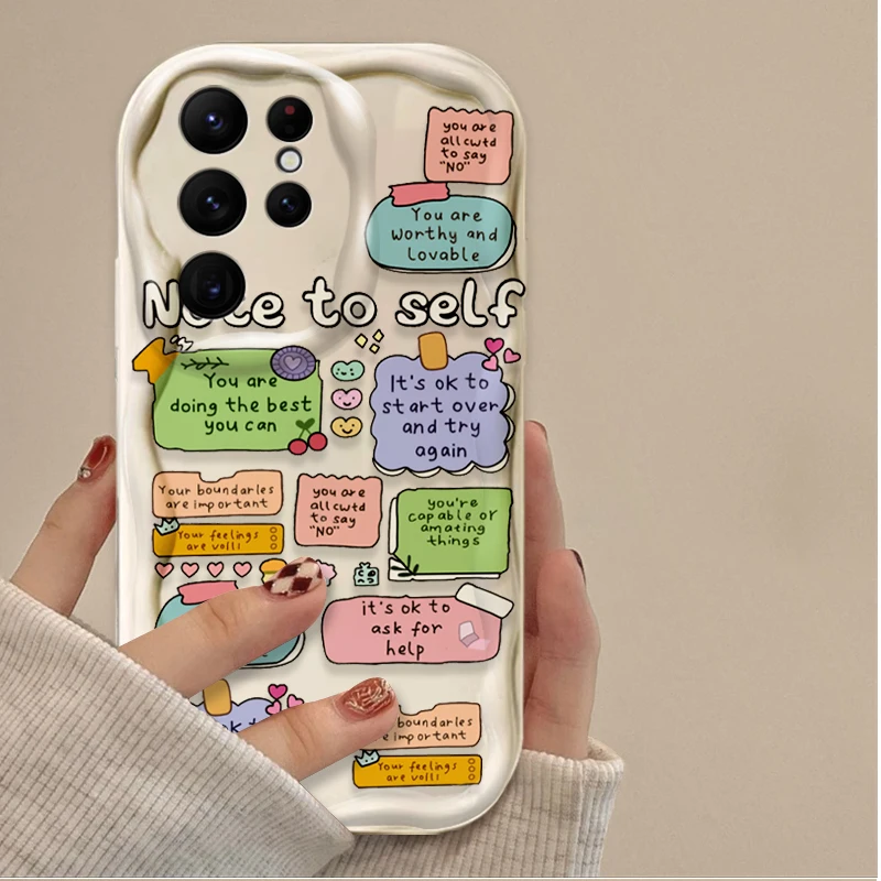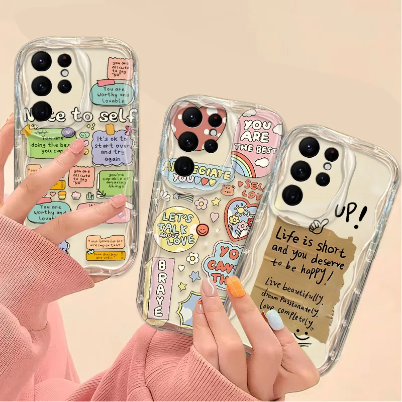 Comprar Funda con eslogan de moda de dibujos animados 3D Wave para Samsung Galaxy S24 Ultra S23 S22 Plus S21 S20 FE A25 A55 A35 A15 A16 A05 A05S A06