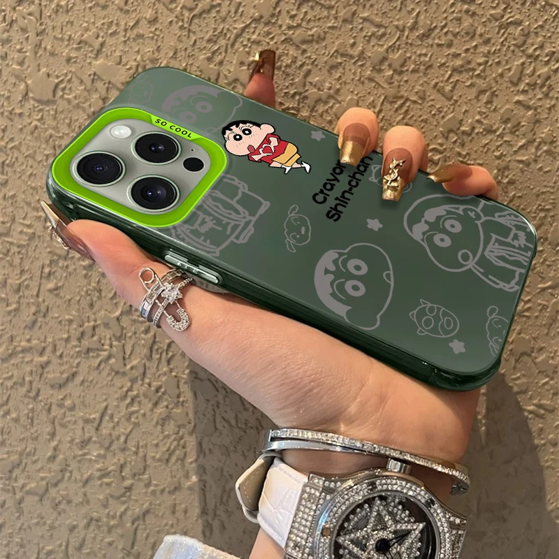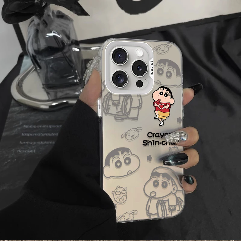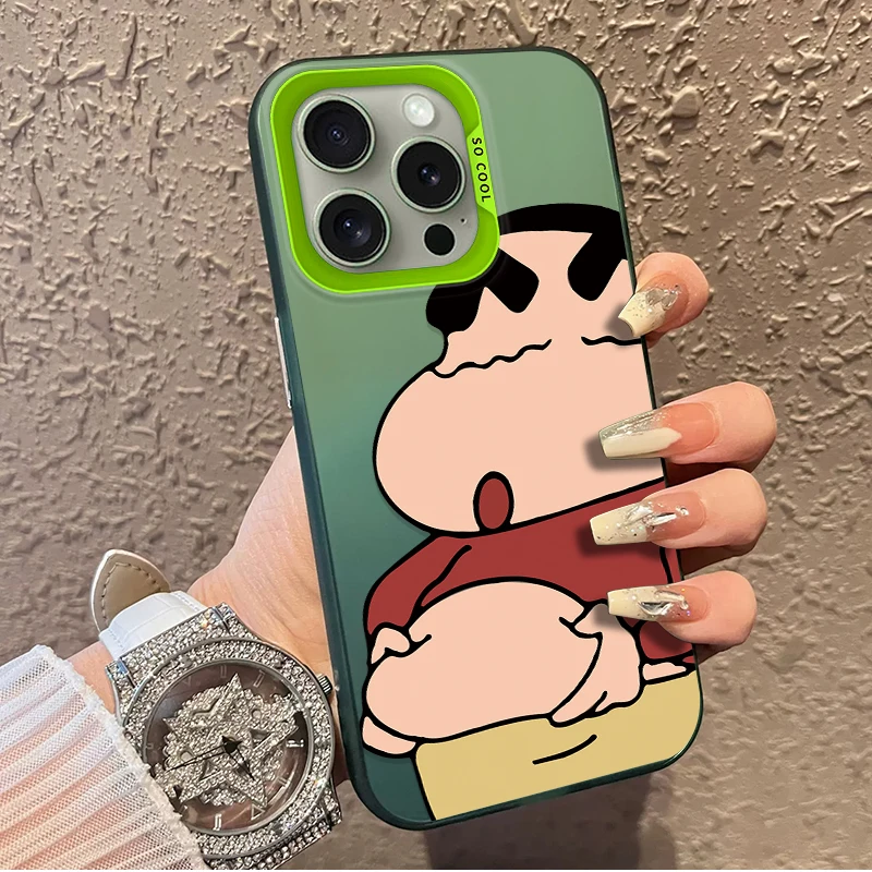 Comprar Funda esmerilada C-Crayon S-ShinChan para iPhone 16 E 15 Pro Max 14 Plus 13 12 Mini 11 Pro Max XS X 8 7 SE, funda de silicona acrílica