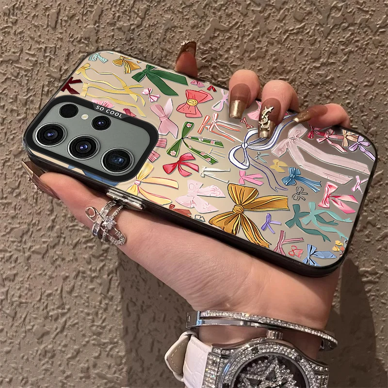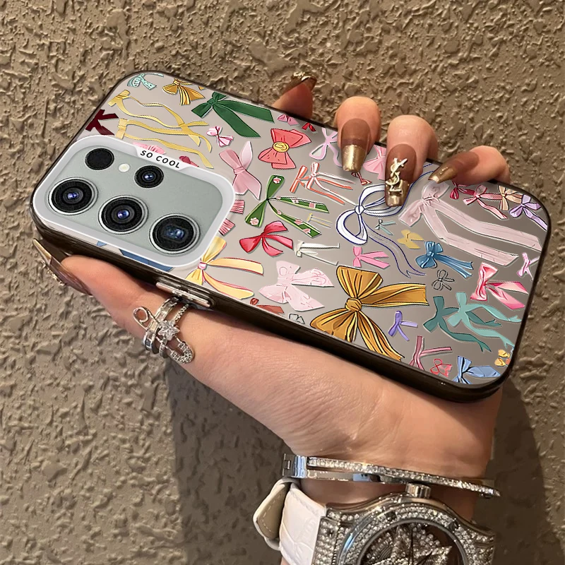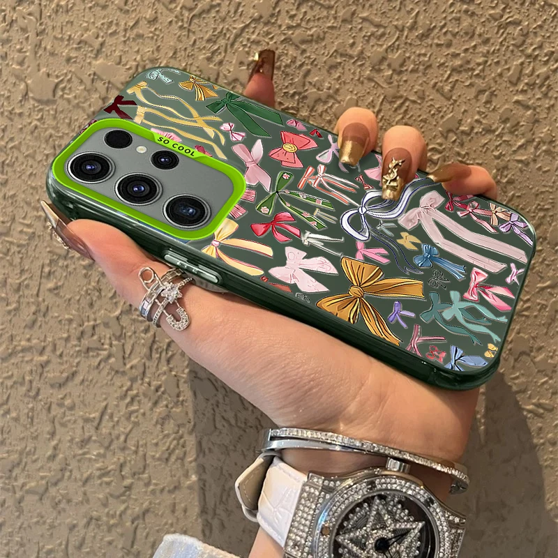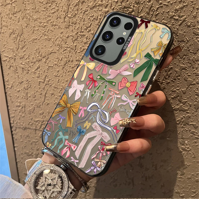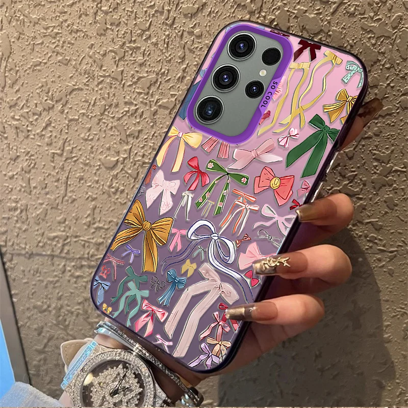 Funda esmerilada con lazo estético para Samsung Galaxy S25 S24 S23 S22 Ultra S21 Plus S20 FE A73 A72 A71 A56 A55 A54 A53 cubierta acrílica
