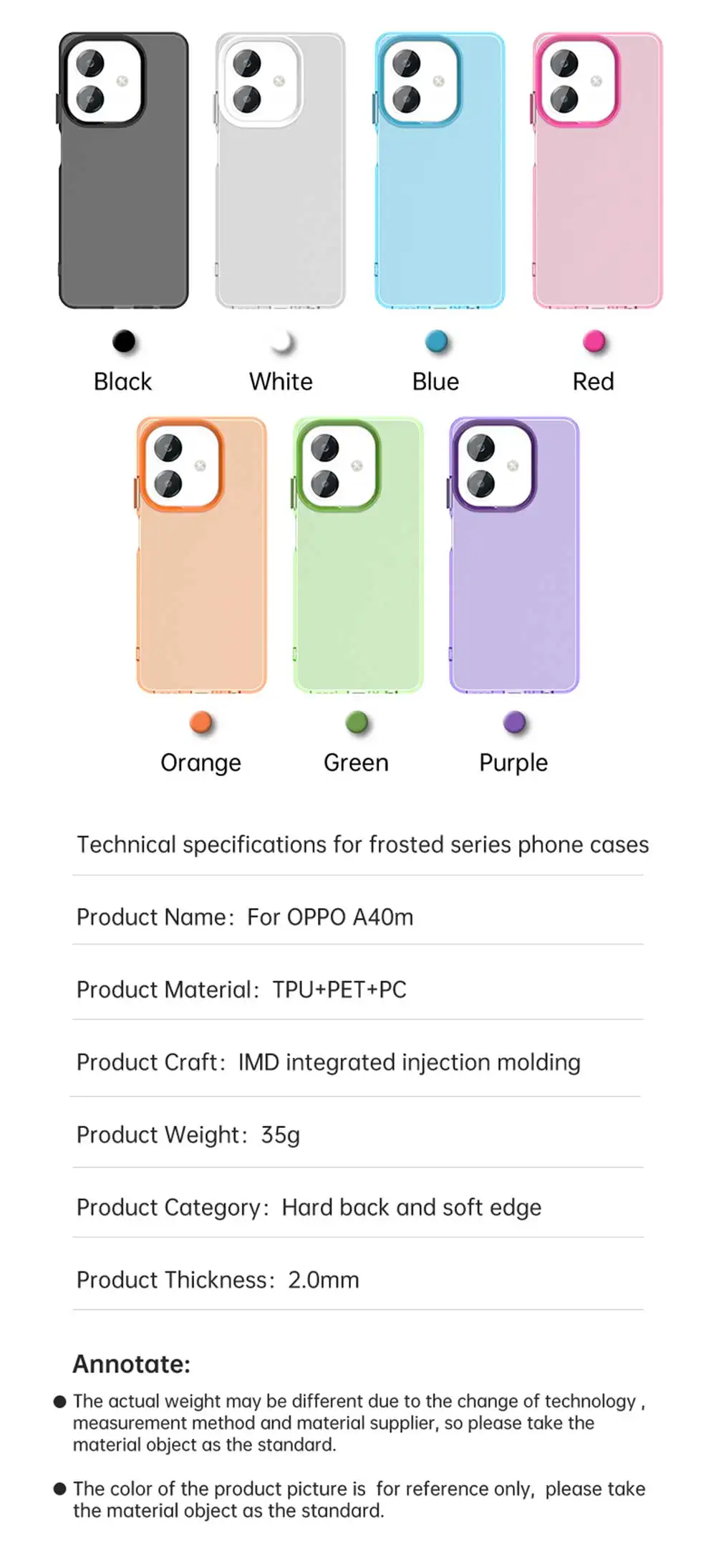 Comprar Funda esmerilada para OPPO A40, Funda OPPO A40 A40m, Funda mate translúcida para PC, Color caramelo, Parachoques trasero para teléfono OPPO A40