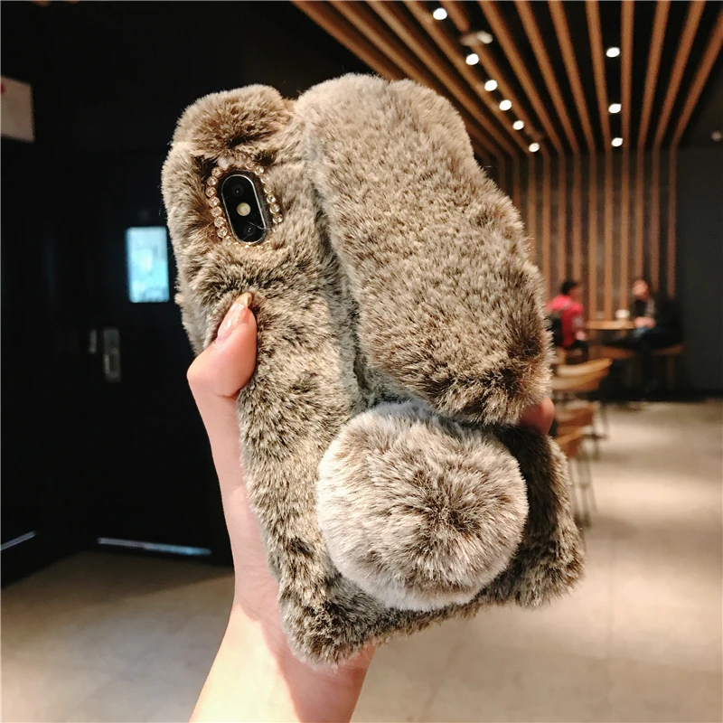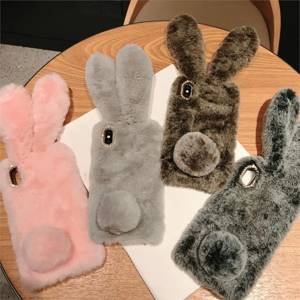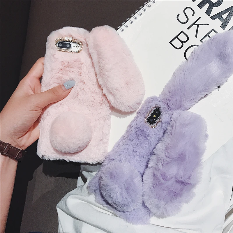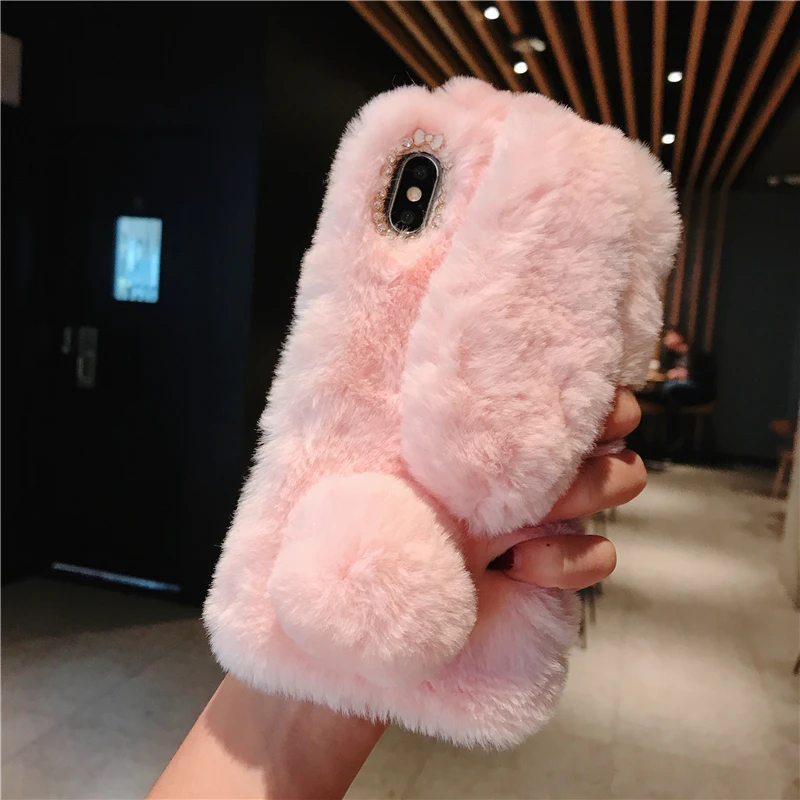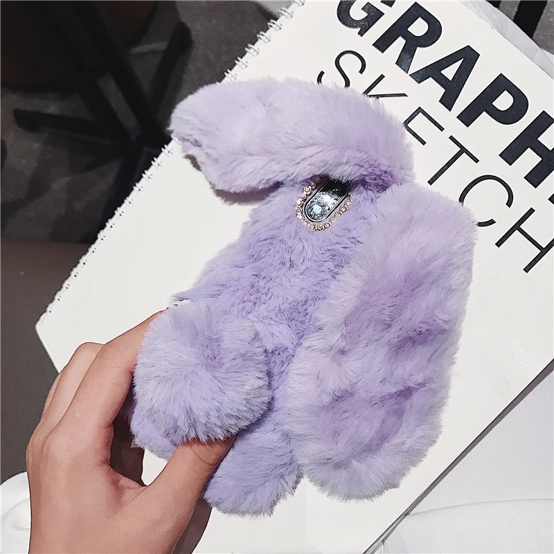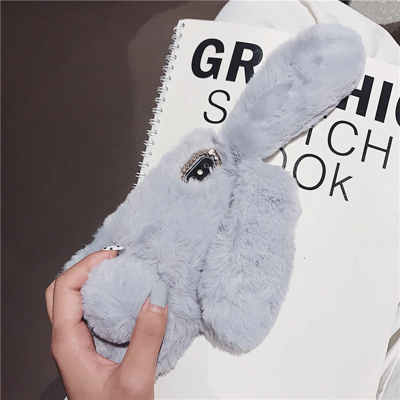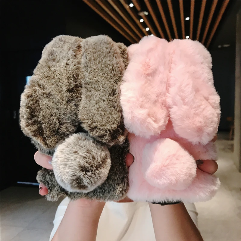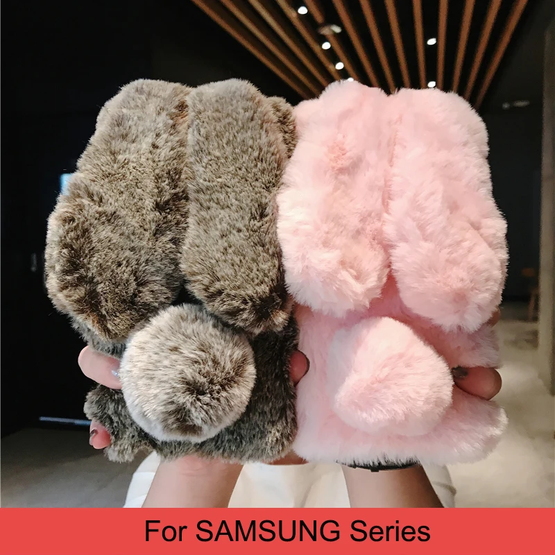 Comprar Funda esponjosa con Orejas de conejo para Samsung Galaxy S20 Ultra S10 S9 S8 Note 9 8 S7 J6 J8 A8 A70 A71 A51 A50 A40 funda de piel de felpa