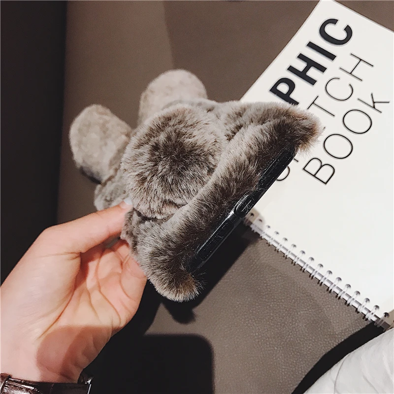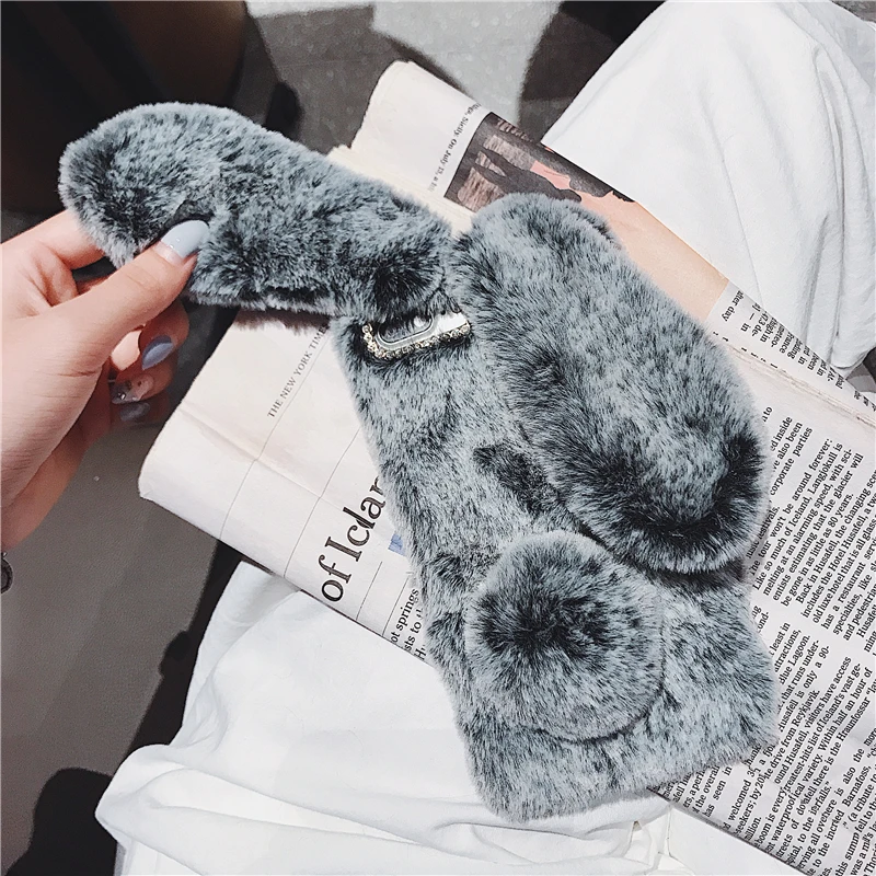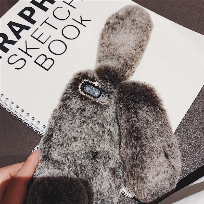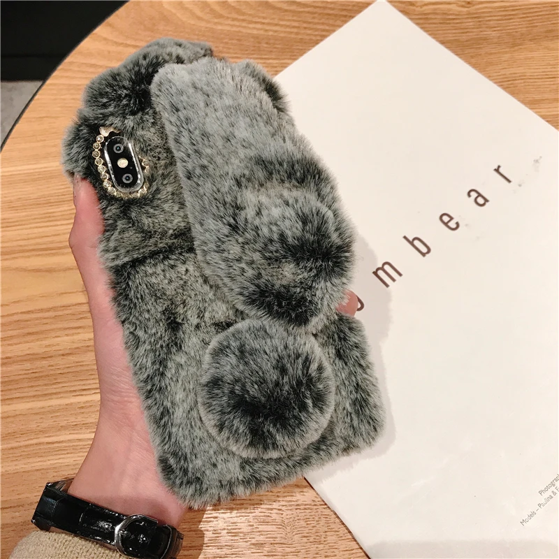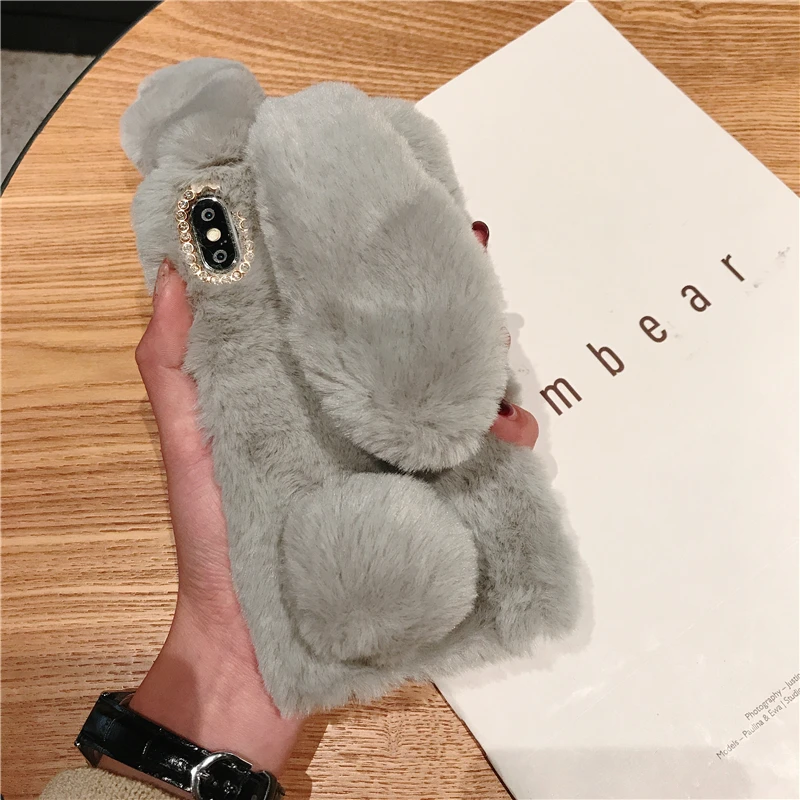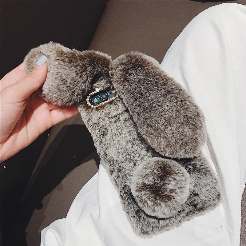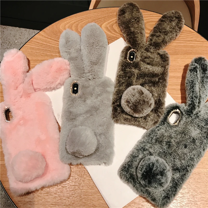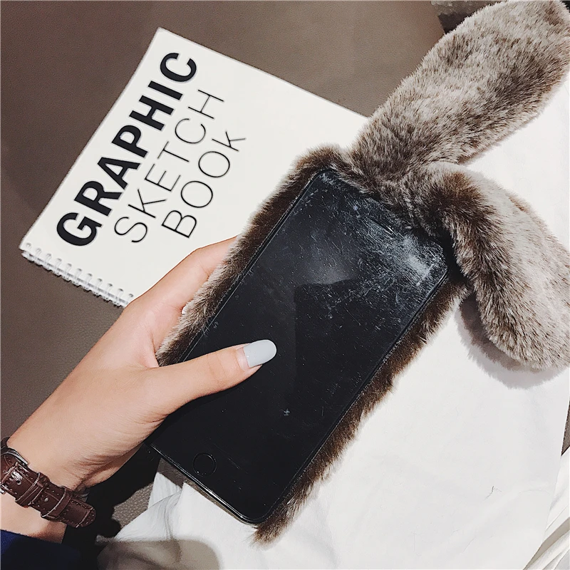 Comprar Funda esponjosa con Orejas de conejo para Samsung Galaxy S20 Ultra S10 S9 S8 Note 9 8 S7 J6 J8 A8 A70 A71 A51 A50 A40 funda de piel de felpa