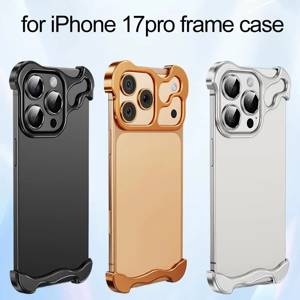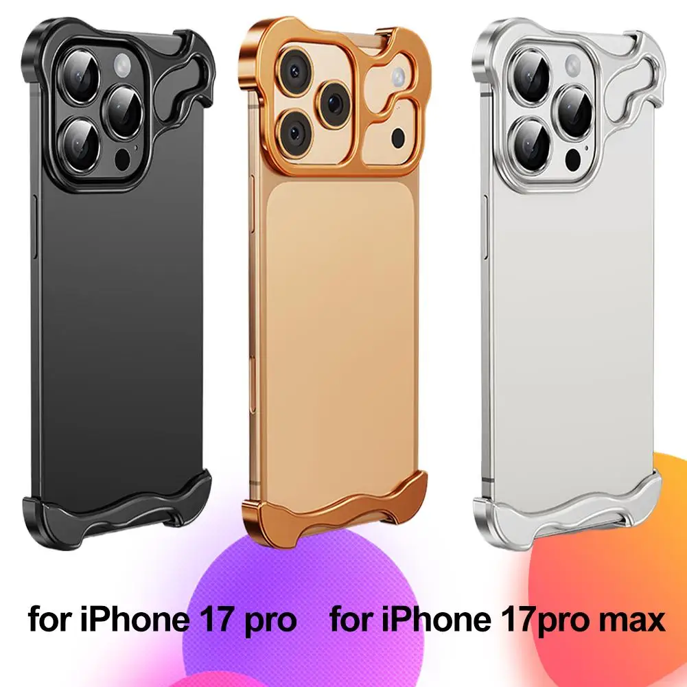 Comprar Funda de esquina de metal para iphone 17 Pro, cubierta dura fina sin bordes antihuellas, carcasa protectora a prueba de golpes