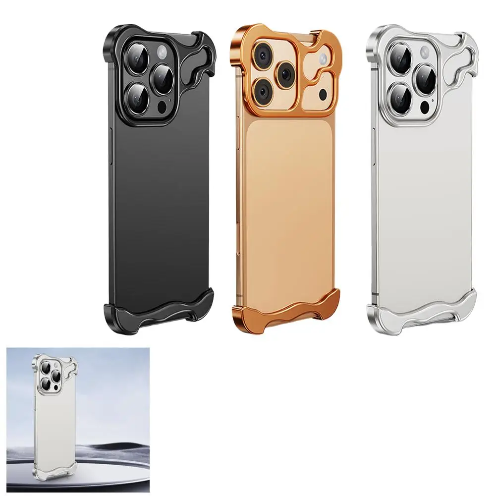 Comprar Funda de esquina de metal para iphone 17 Pro, cubierta dura fina sin bordes antihuellas, carcasa protectora a prueba de golpes