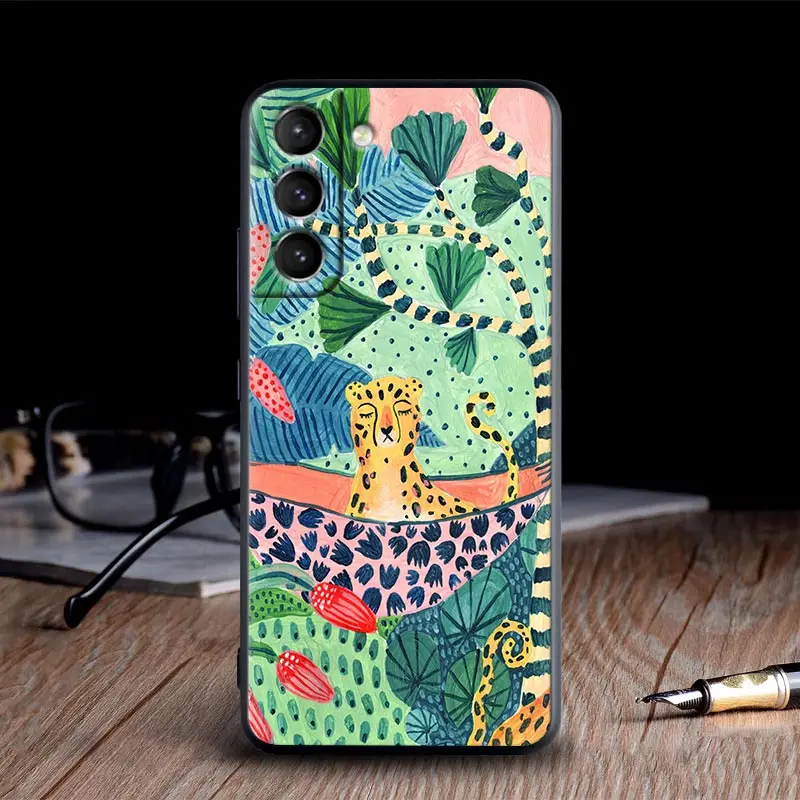 Funda de silicona con estampado de selva Tropical, leopardo, perezoso, gato, para Samsung Galaxy S23 Ultra S22 5G S21 S20 FE, funda para Galaxy S22 s23 S21 S10 Plus