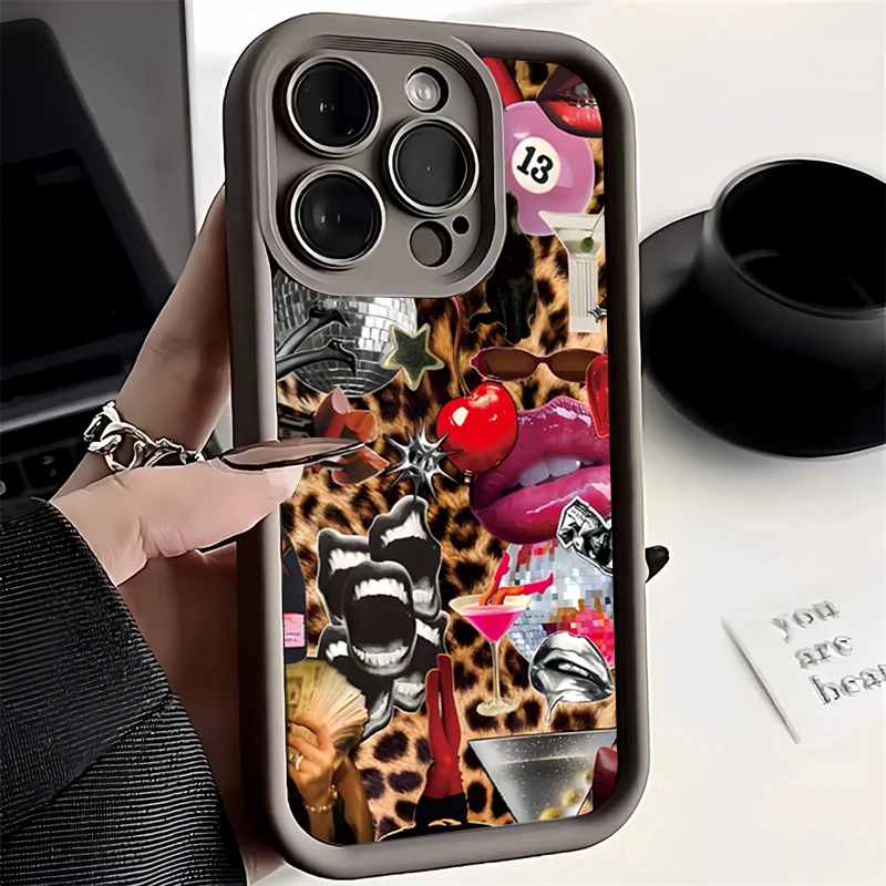 Comprar Funda con estampado de labios de leopardo dulce y picante para Samsung A55 5g, funda S23 S24 Ultra A34 5g A54 A53 A32 A15 A35 A52 A14 S22 S21 FE