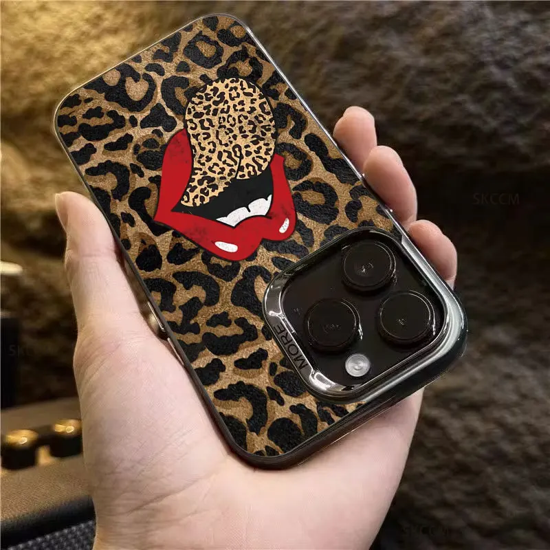 Funda con estampado de leopardo y labios rojos para iPhone 16 15 Pro Max 11 12 14 13 7 8 Plus X XS XR SE, funda de silicona con lengua grande para mujer