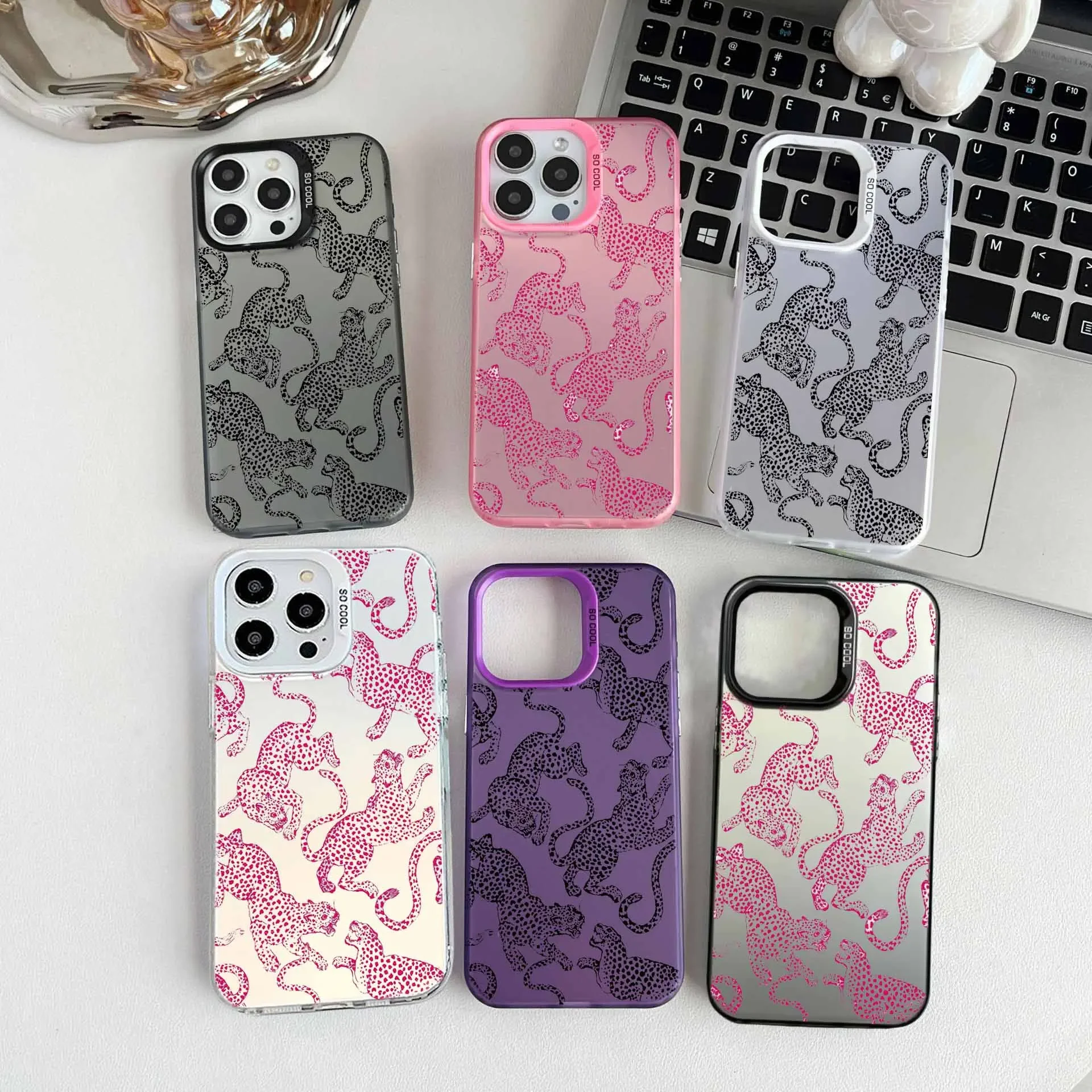Comprar Funda con estampado de leopardo negro y rosa para iphone 16, 15, 14, 13, 12, 11 Pro Max, 16E, 17 Pro, 17 Air, 13, Mini, mate, IMD Har
