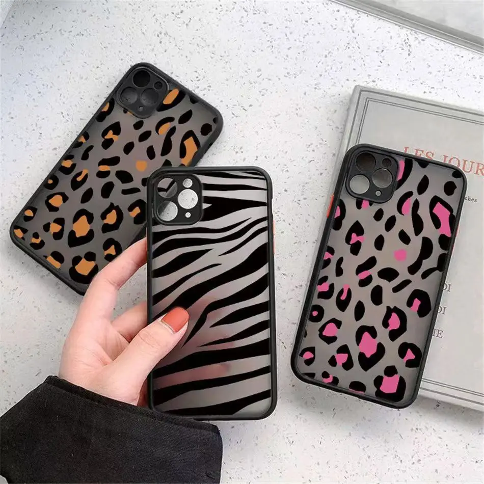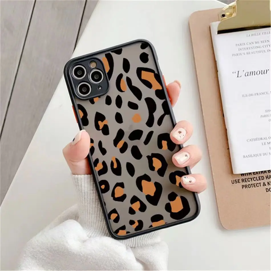 Funda de teléfono con estampado de leopardo marrón para iPhone 11 12 13 14 15 Pro Max Plus XR XS X 7 8 Plus SE 2022 funda dura mate a prueba de golpes