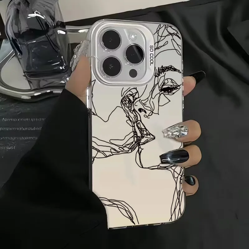 Funda estética de línea abstracta para Xiaomi Redmi A1, 13C, 9C, 9T, Note 7, 8, 9, 9S, 10, 11, 12, 13 Pro, K60 Ultra, 4G, 5G, cubierta trasera mate - imagen 1