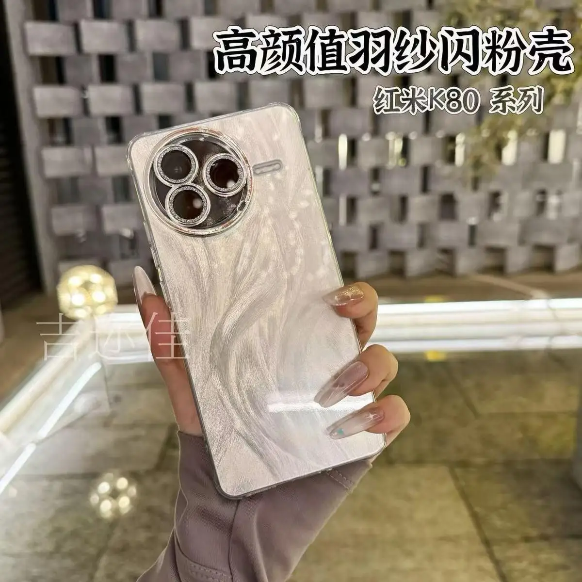 Funda para POCO F7 Ultra F6 X6 Pro, lente de pluma brillante, funda completa de TPU para PC para Xiaomi POCO F7 Pro, parachoques a prueba de golpes