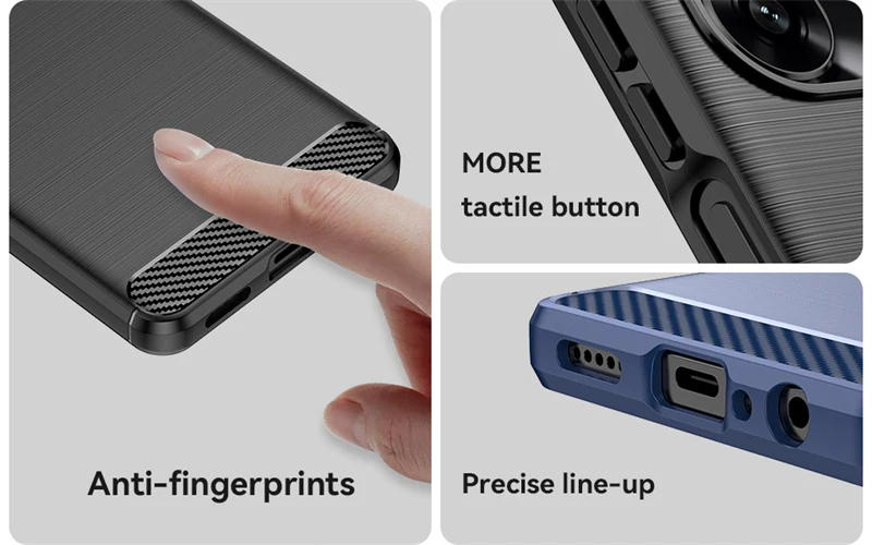 *Material*: textura de fibra de carbono, tacto suave y cómodo y silicona TPU suave