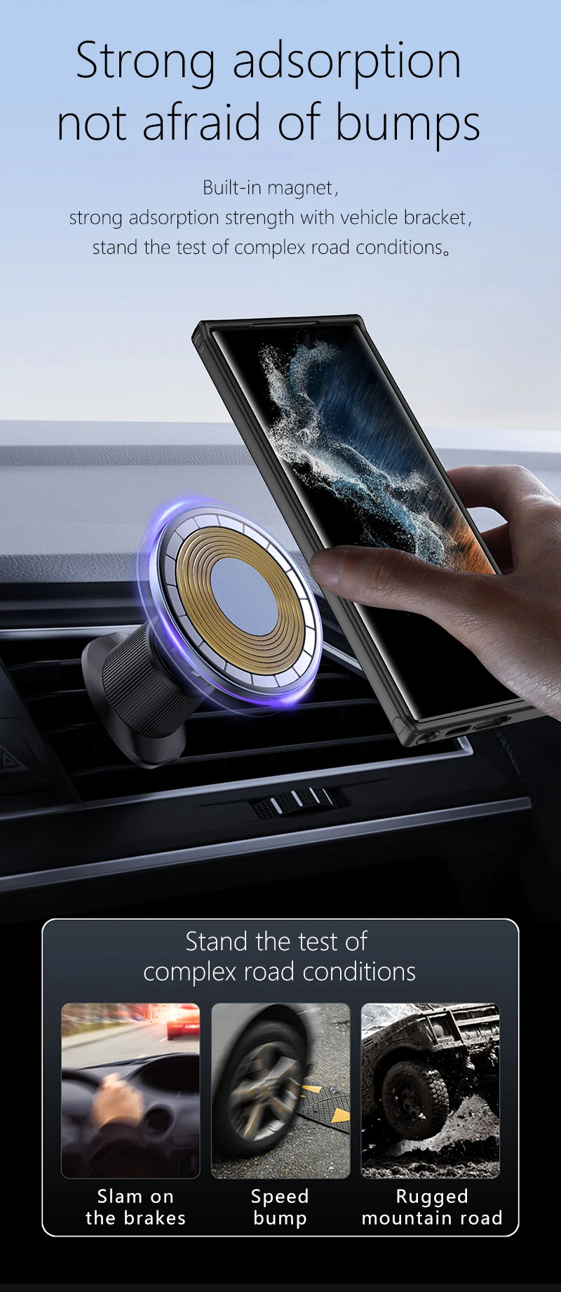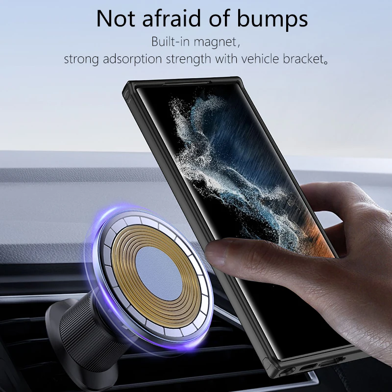 El anillo magnético en la funda no coincide con el lugar de carga sin contacto en el teléfono S24 Ultra. Si planeas usar esta funda en un coche con soporte magnético y carga sin contacto, no la recomiendo; desafortunadamente, no funcionará.