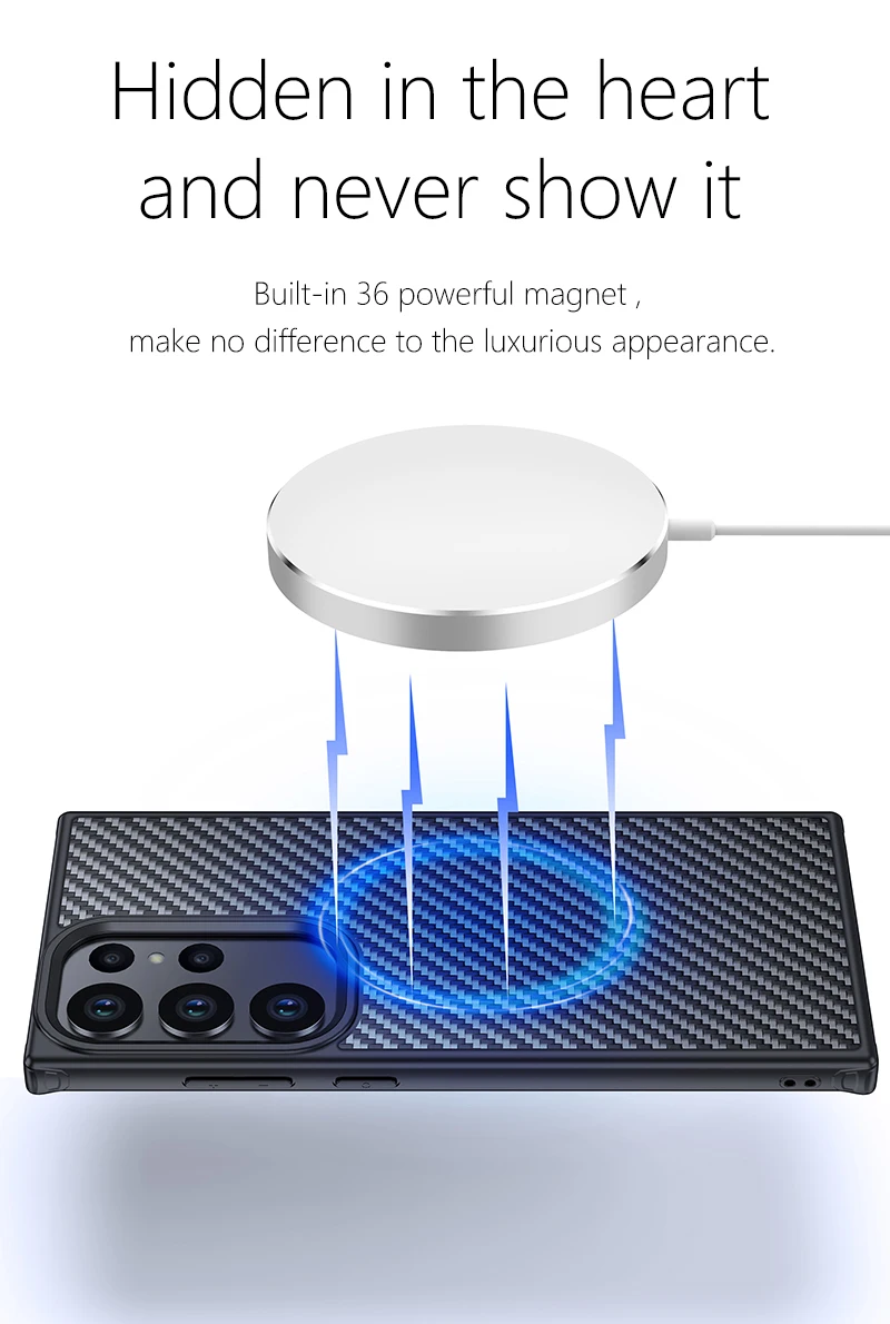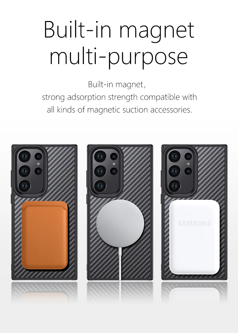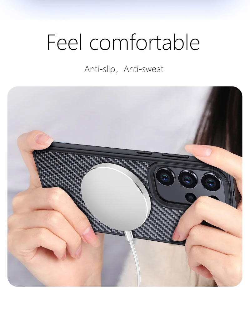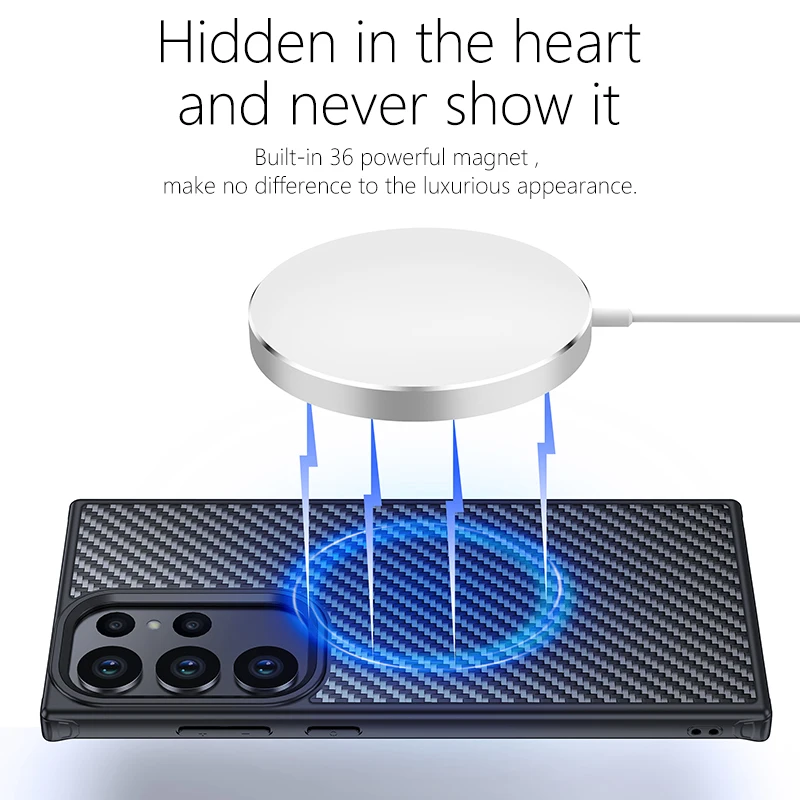 Comprar Funda de fibra de carbono magnética Kevlar para Samsung Galaxy S24, S23 Ultra, S23 Plus, + S23, funda de armadura de fibra de aramida, compatible con cargador Magsafe