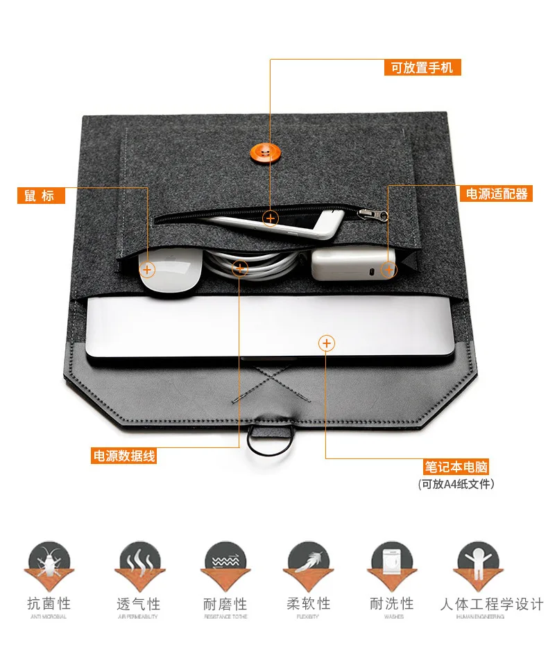 Comprar Funda de fieltro de lana para ordenador portátil, funda de transporte para HP Notebook, Macbook Air Pro 13, a prueba de golpes, para hombre y mujer, 11, 12, 13,3, 14, 15, 16
