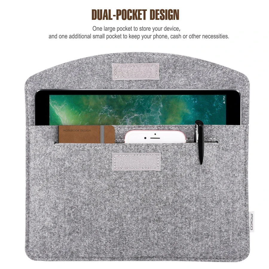 El material de esta bolsa es fieltro, diseño de doble capa, no es necesario colocar artículos pequeños por separado.