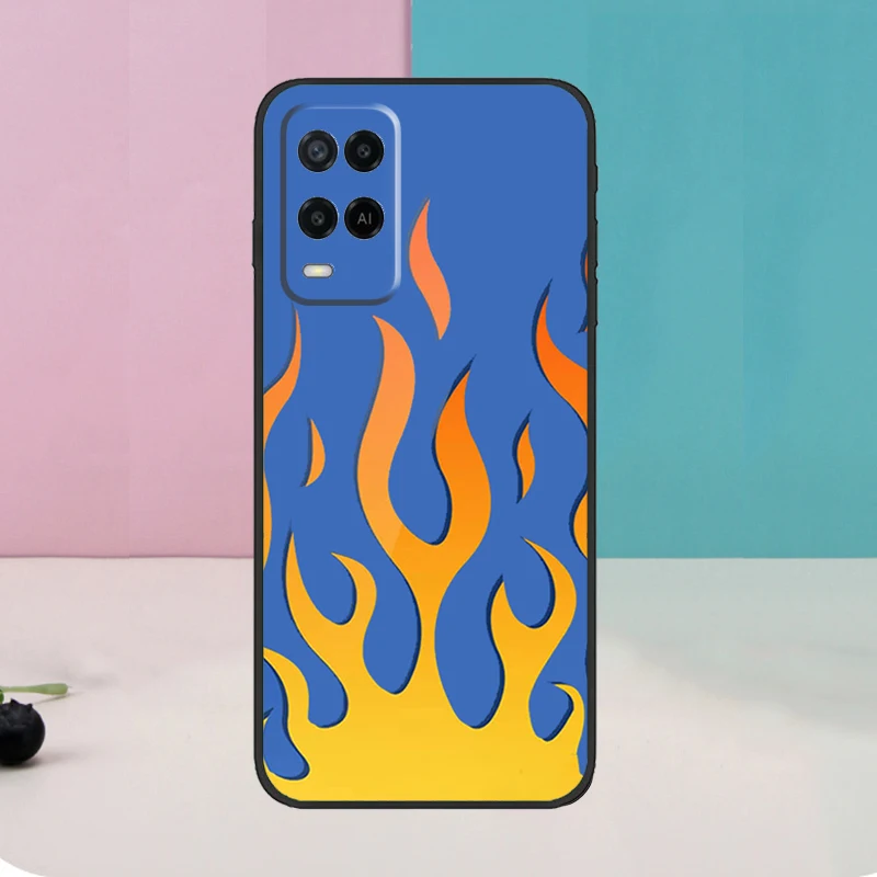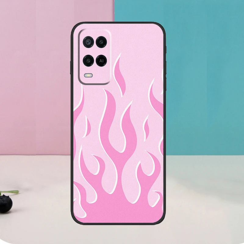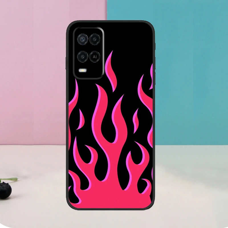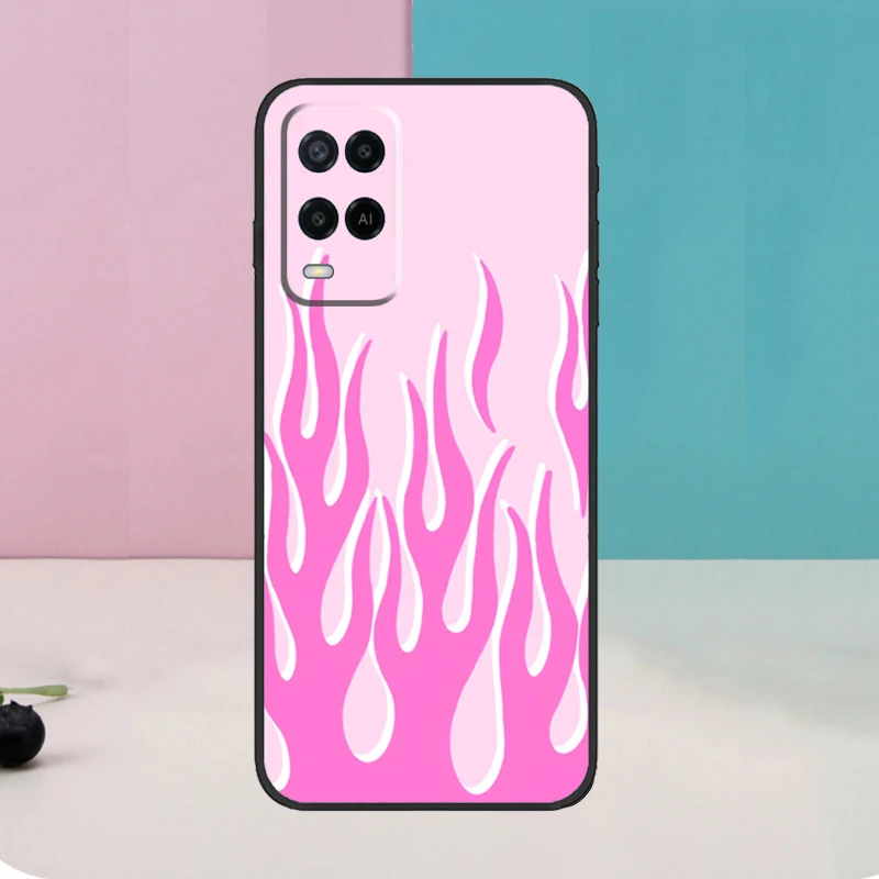 Funda Flame Estética Azul Claro Rosa fuego para Oppo A5 Pro A6 A15 A16 A76 A96 A17 A57 A98 A58 A78 A18 A38 A54 A74 A94 A40 A60 A80