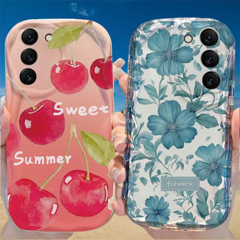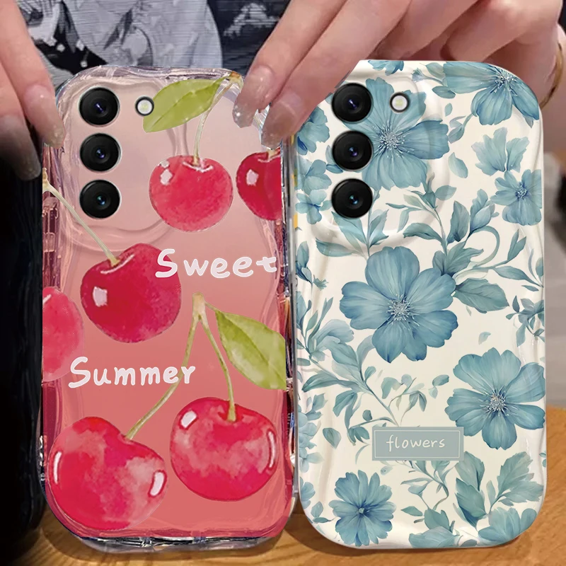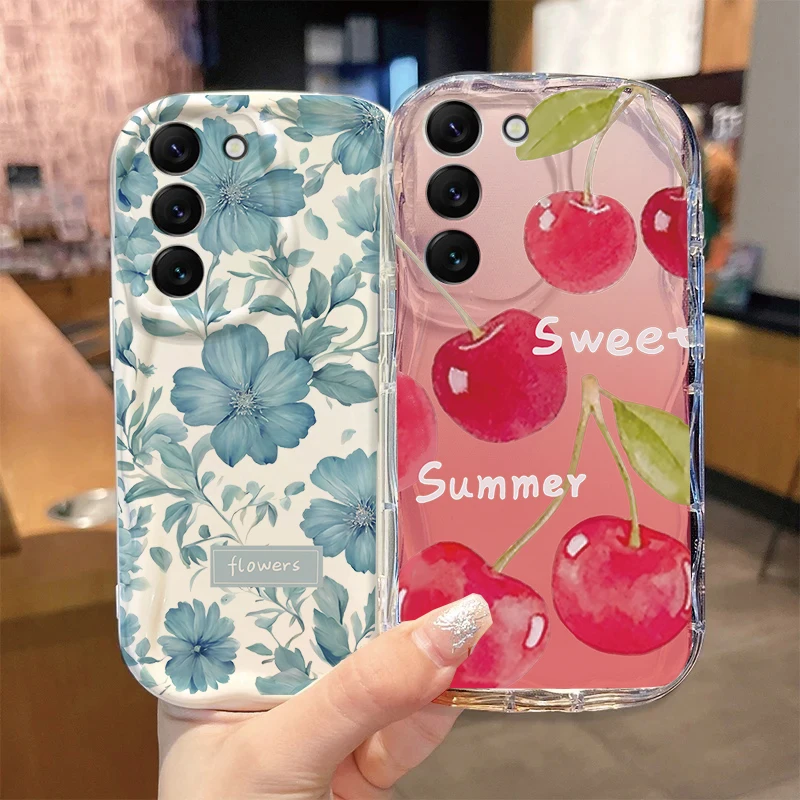 Comprar Funda de flor de cereza y fruta dulce para Samsung Galaxy A56 5G S25 Ultra S24 S23 S22 Plus FE A55 A15 A16 A17 A36 A54 A34 A53 A35 A26