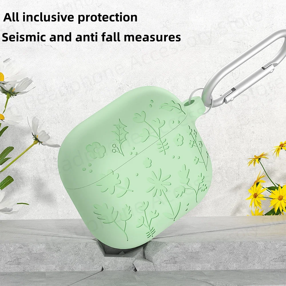 Comprar Funda de flores 3D para AirPods 4(2024) con llavero y Kit de limpieza, funda protectora de silicona suave con dibujos animados, funda protectora para Airpod 4