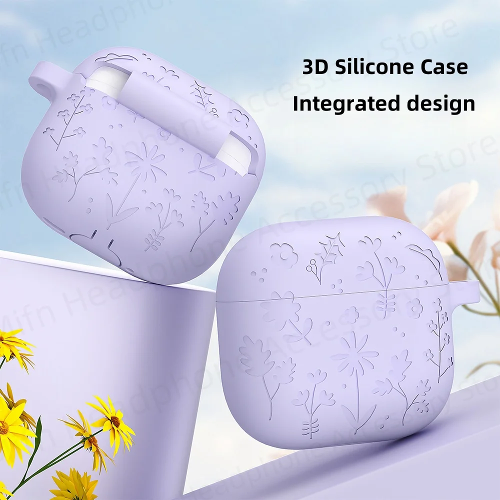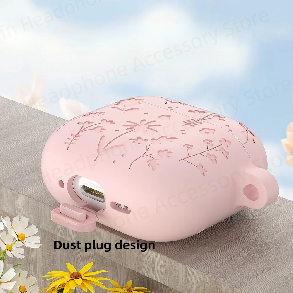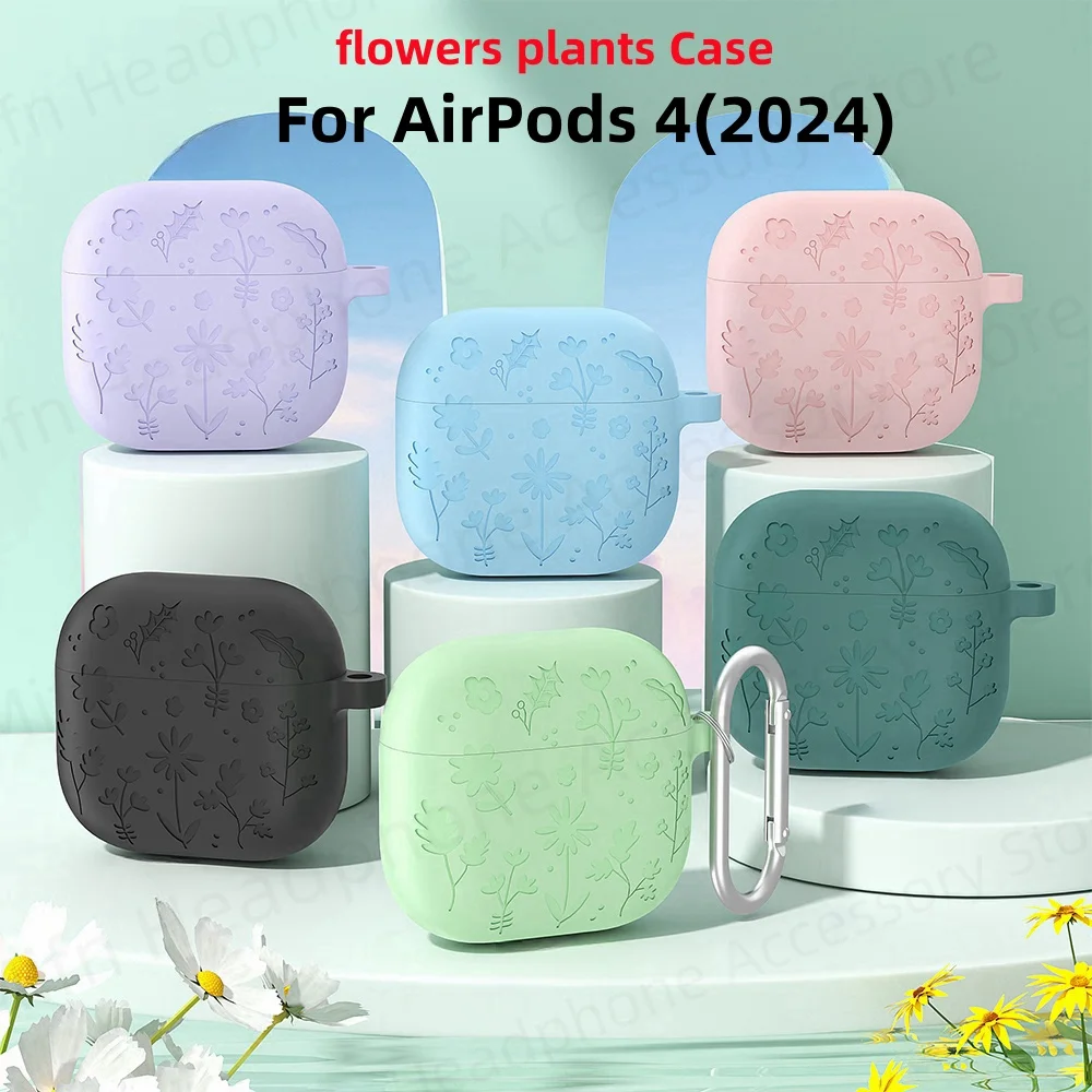 Funda de flores 3D para nuevos AirPods 4(2024) con llavero y kit de limpieza Funda bonita de silicona suave con dibujos animados Funda protectora Airpod 4