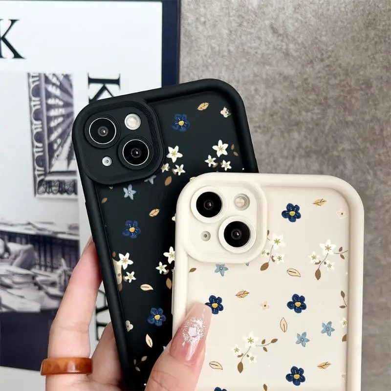 Funda de flores blancas y azules para iPhone 13Pro 16 15 14 12 11 Pro Max XR 7 8 Plus, carcasa protectora de pantalla a prueba de golpes