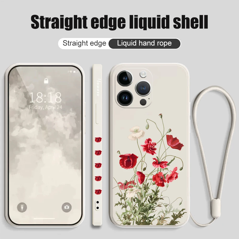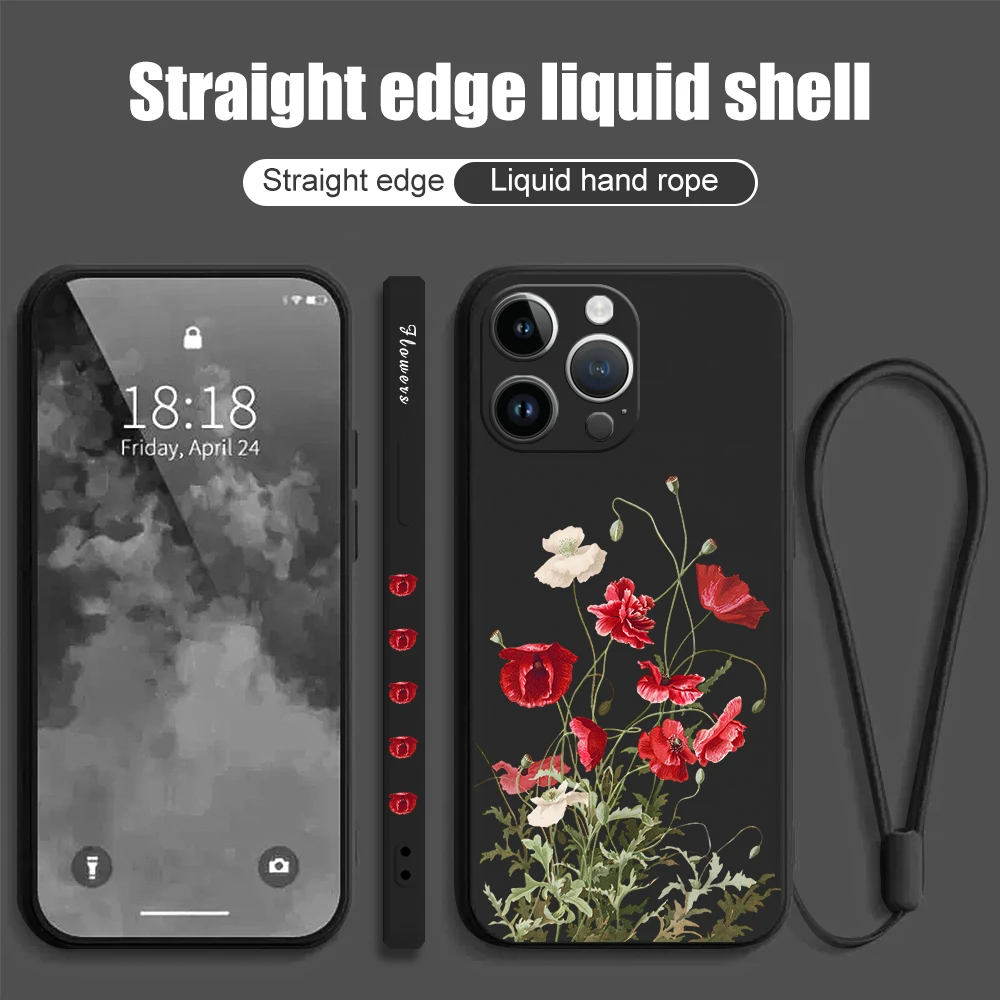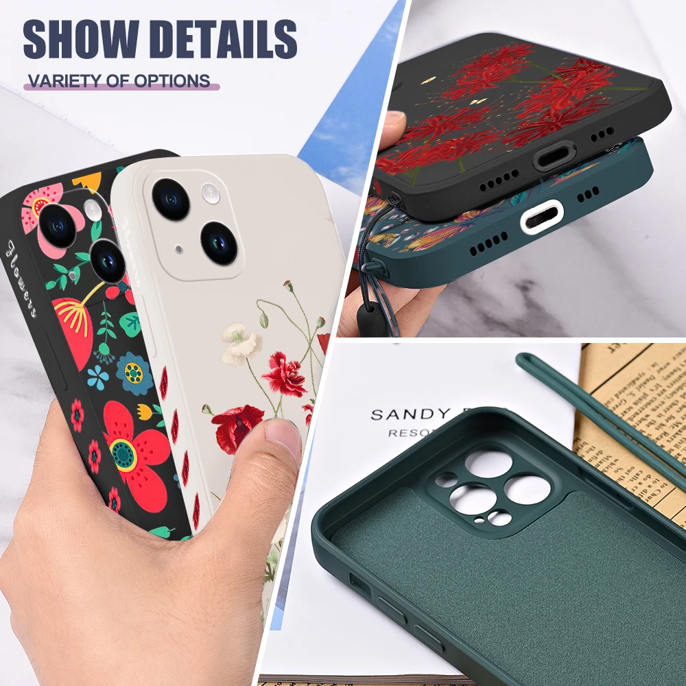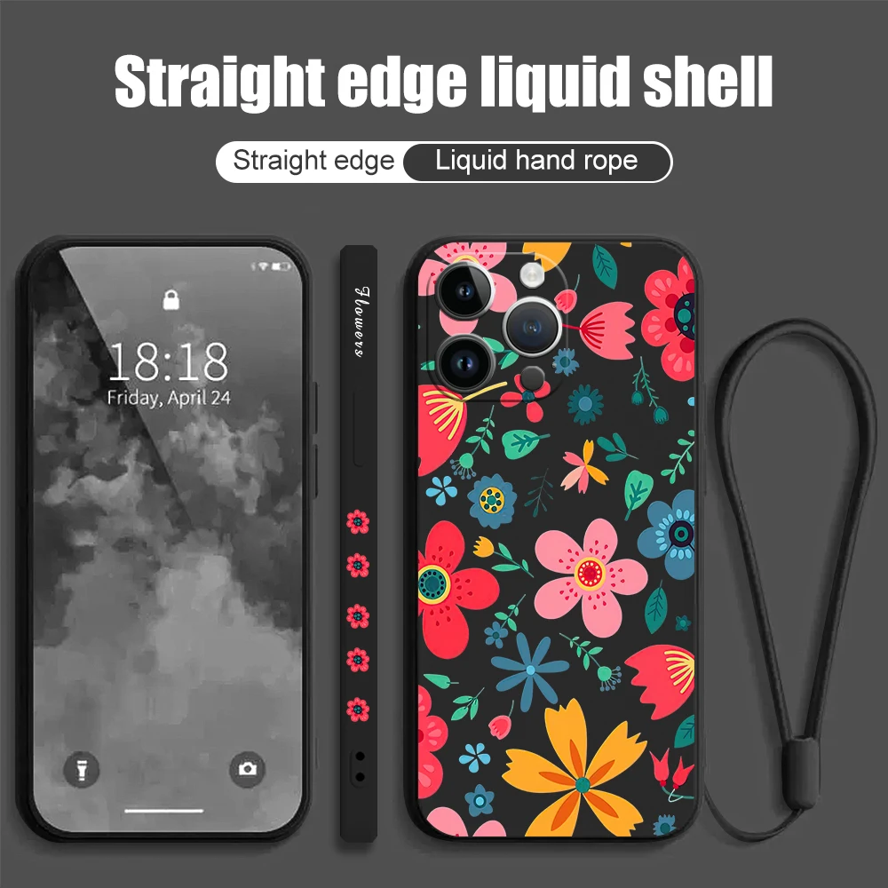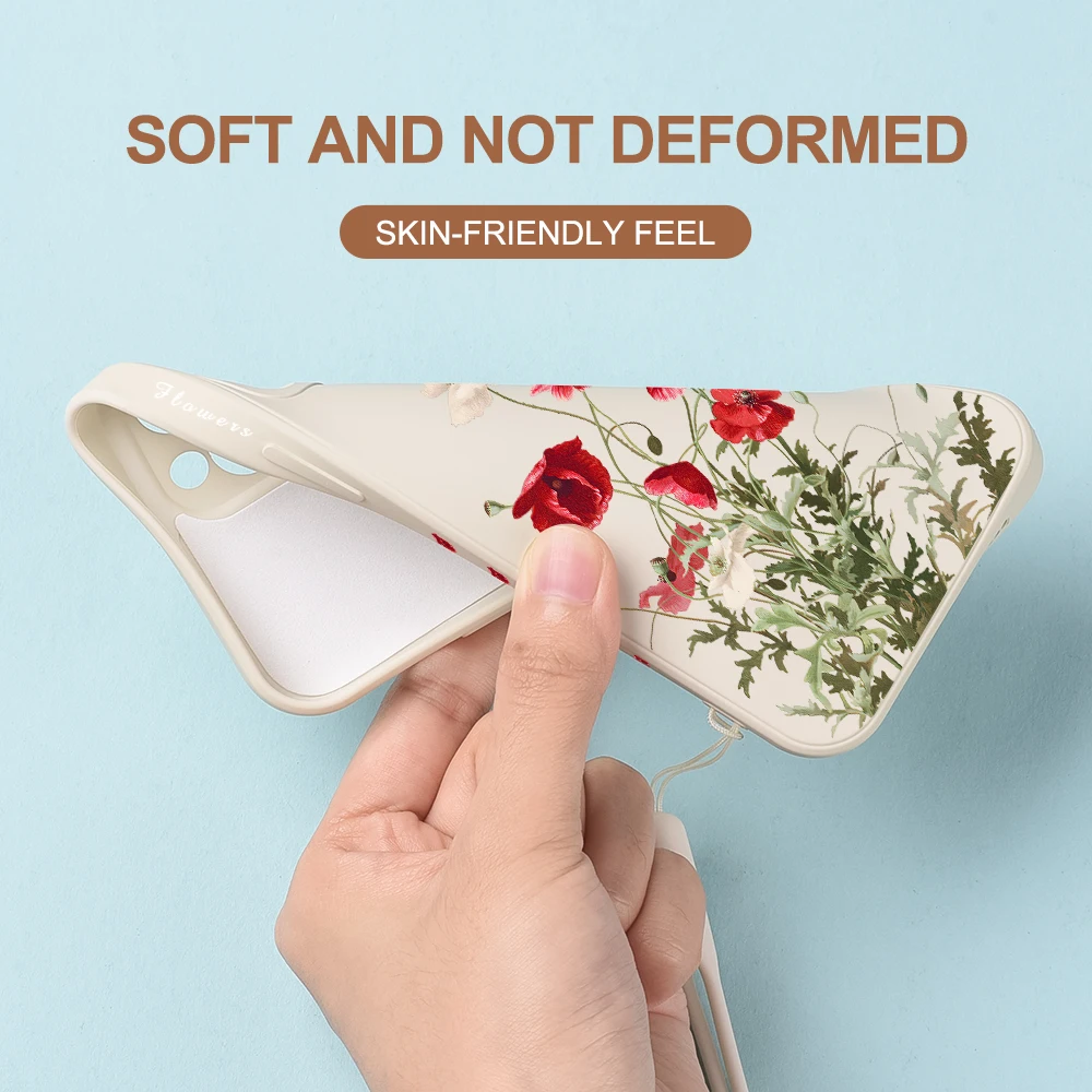 Funda de flores Retro Para Samsung Galaxy S23 S22 S21 S24 Ultra S24 Plus S20 S23 S21 FE 5G, funda de silicona líquida con cordón