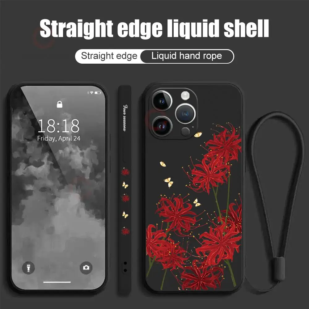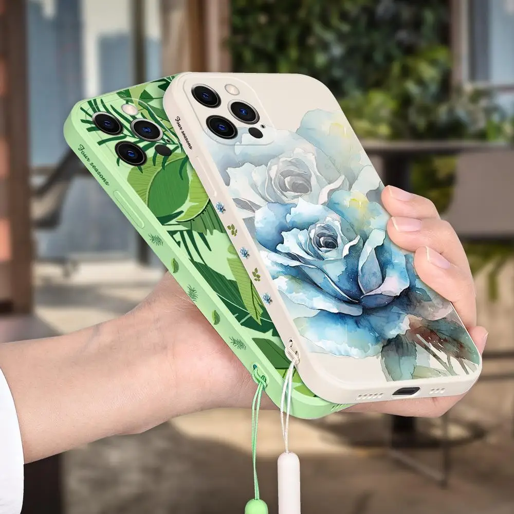 Funda de flores para Apple Iphone 14 13 12 15 11 Pro Max 14 Plus 14pro 13 Mini SE 2022 2020 X XR XS funda de silicona con cordón