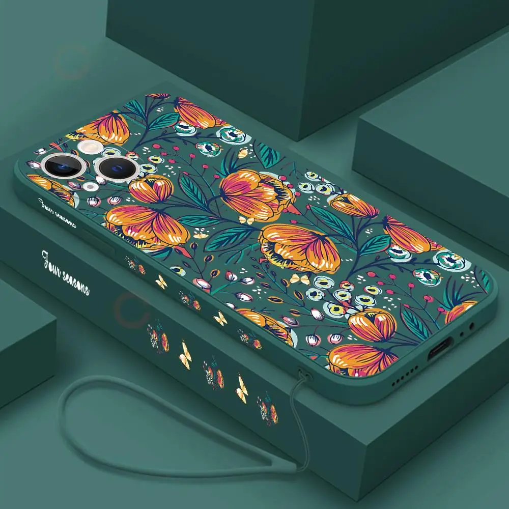 Funda de flores para Apple Iphone 14 13 12 15 11 Pro Max 14 Plus 14pro 13 Mini SE 2022 2020 X XR XS funda de silicona con cordón