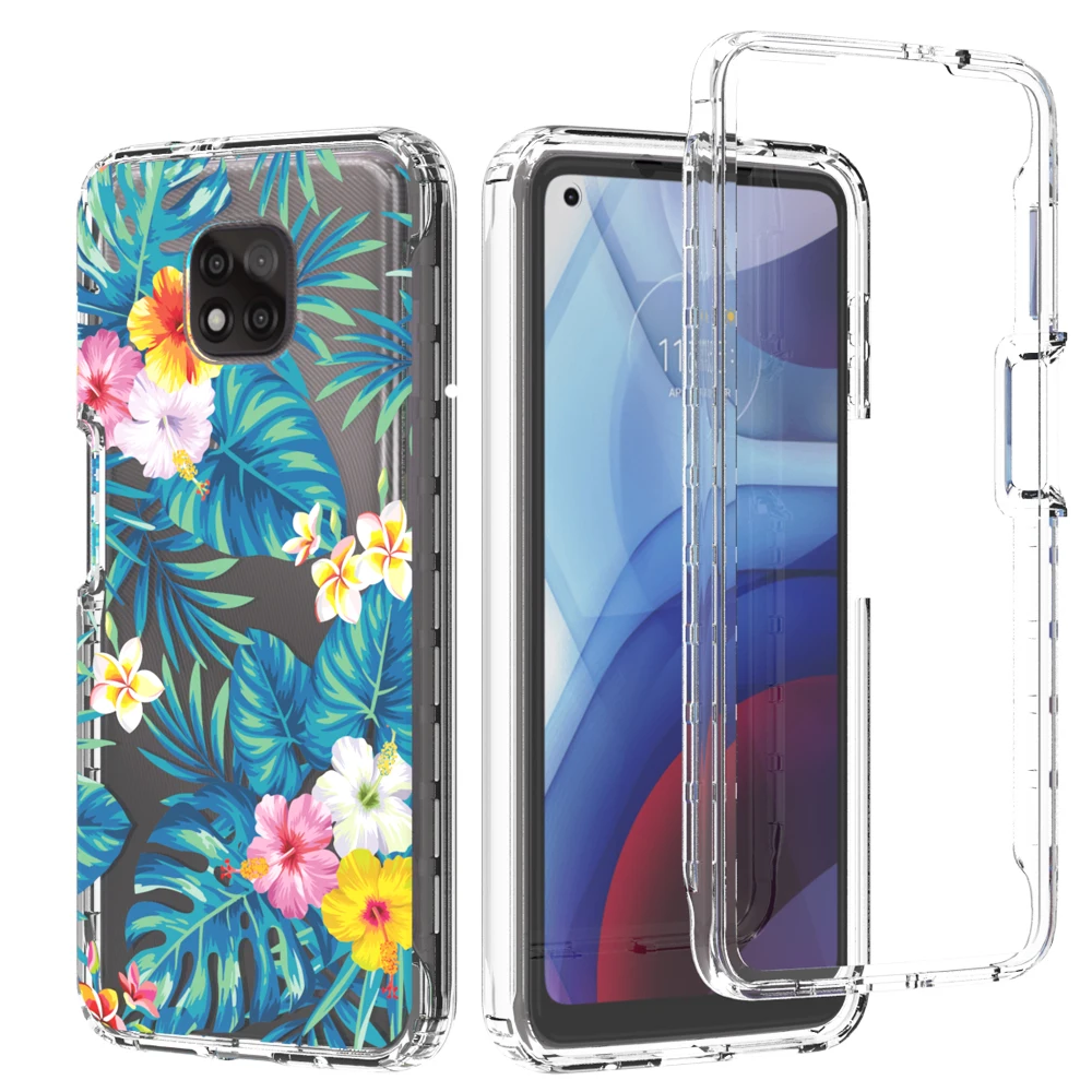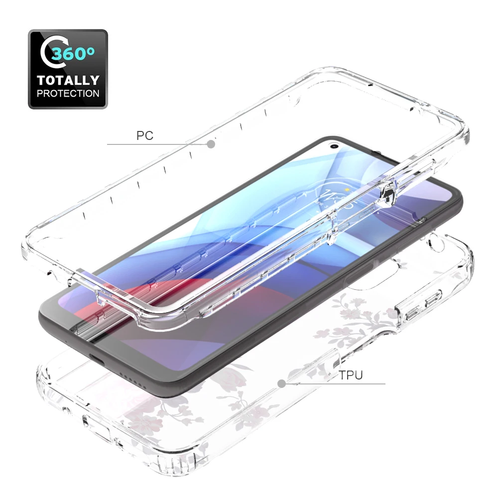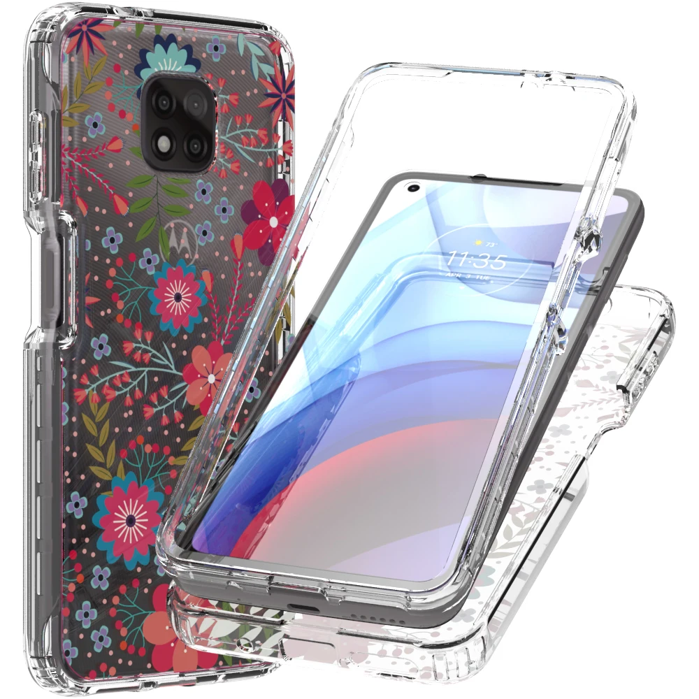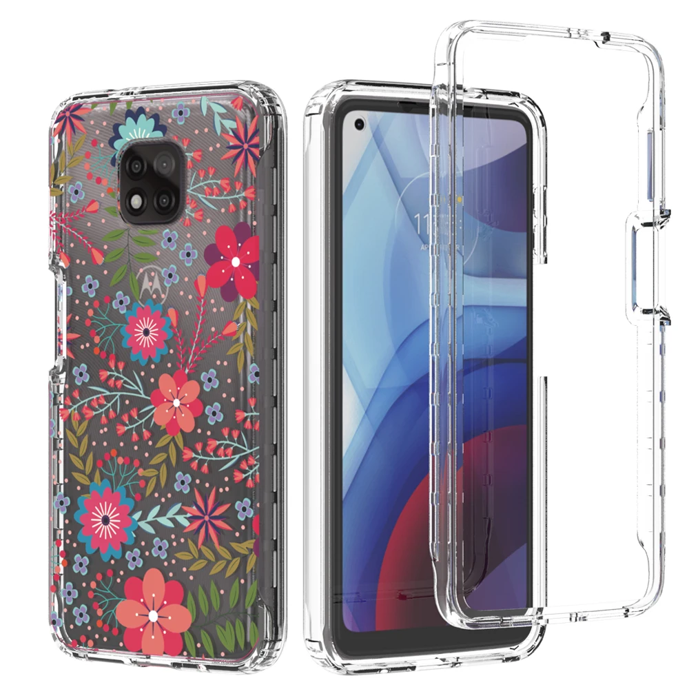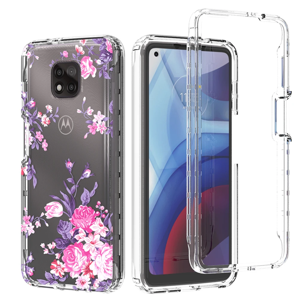 Funda de flores transparente 2 en 1 para Motorola Moto G Power 2021 MotoG Power Hard PC + Soft TPU 360 funda protectora completa para teléfono