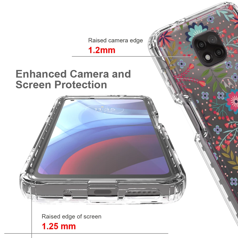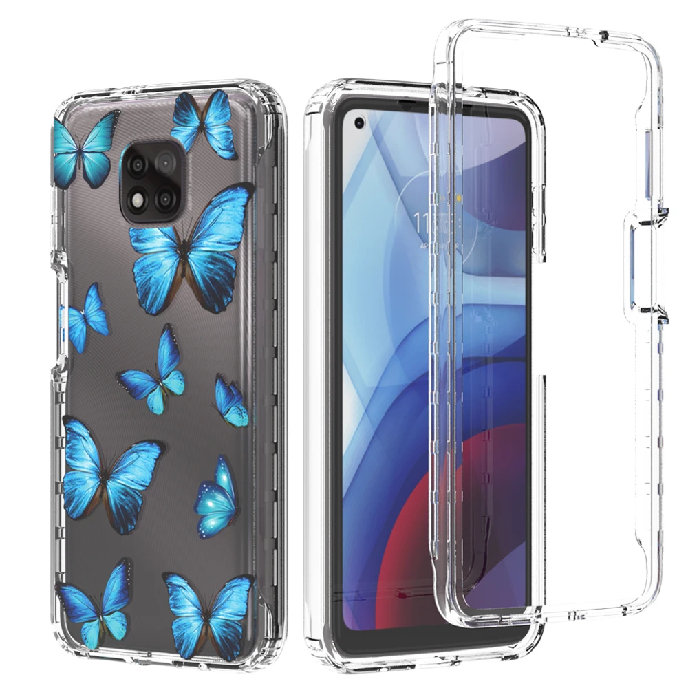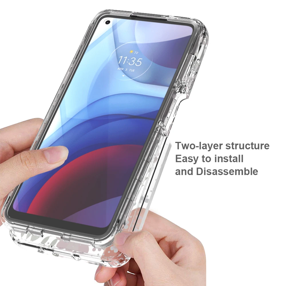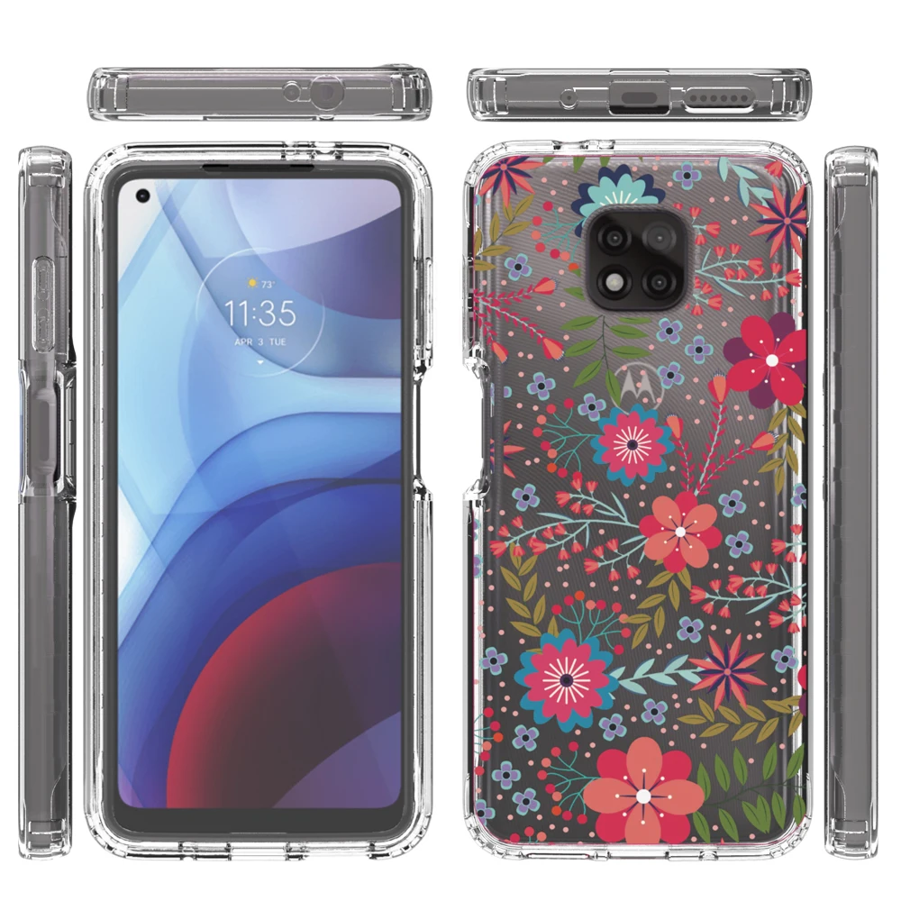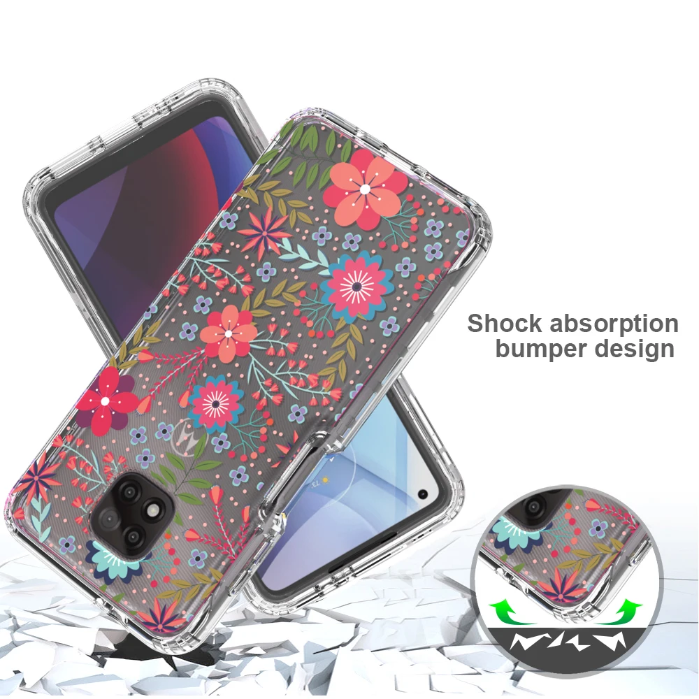 Funda de flores transparente 2 en 1 para Motorola Moto G Power 2021 MotoG Power Hard PC + Soft TPU 360 funda protectora completa para teléfono