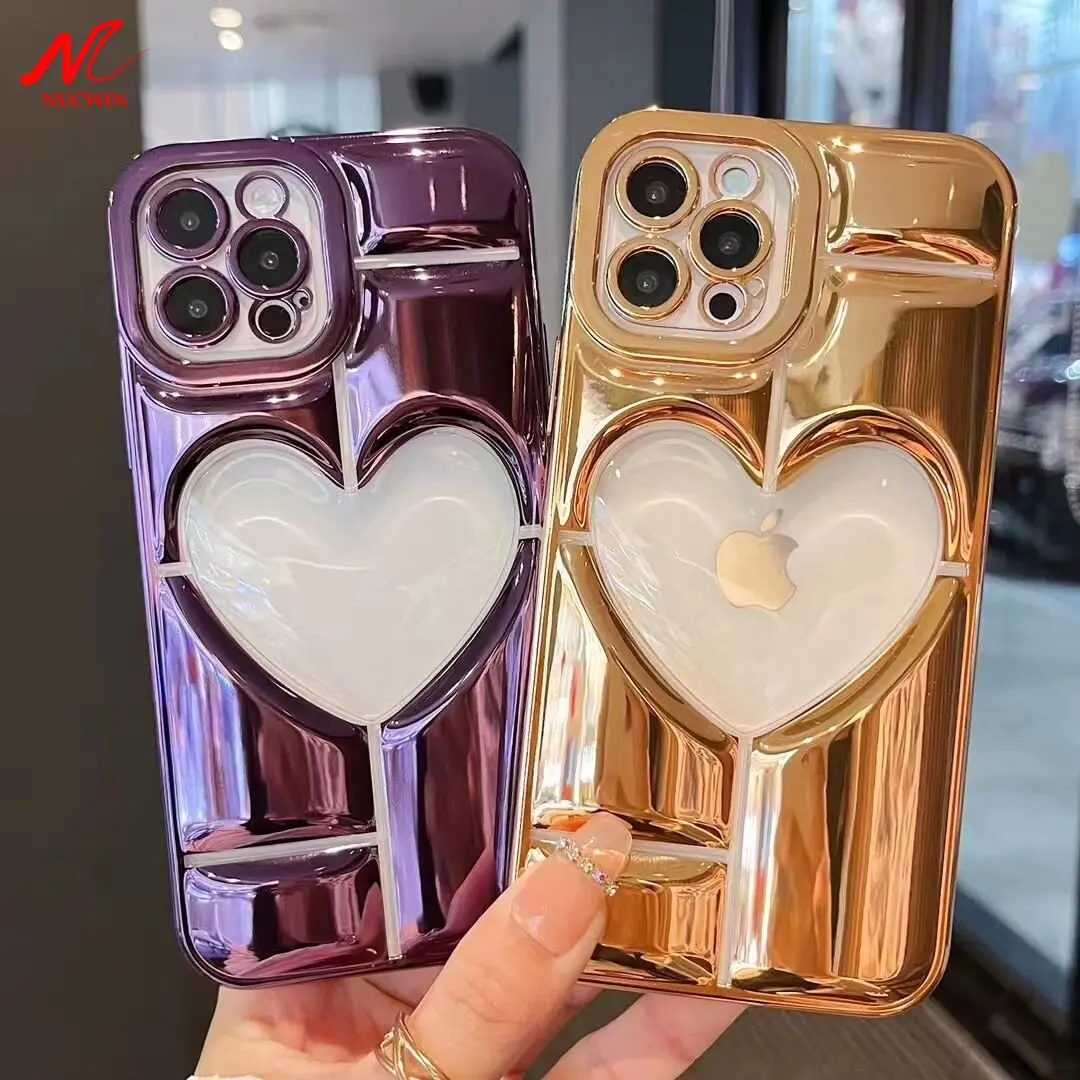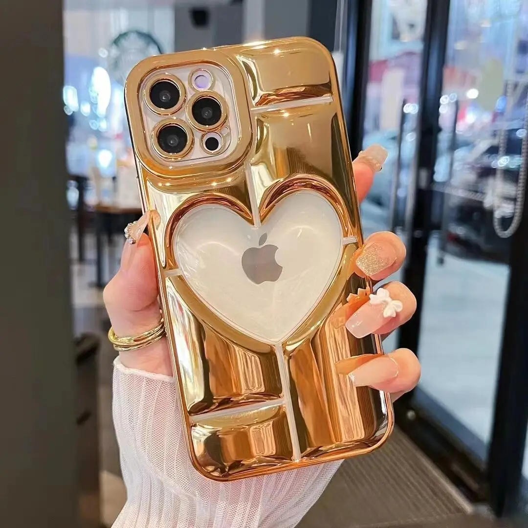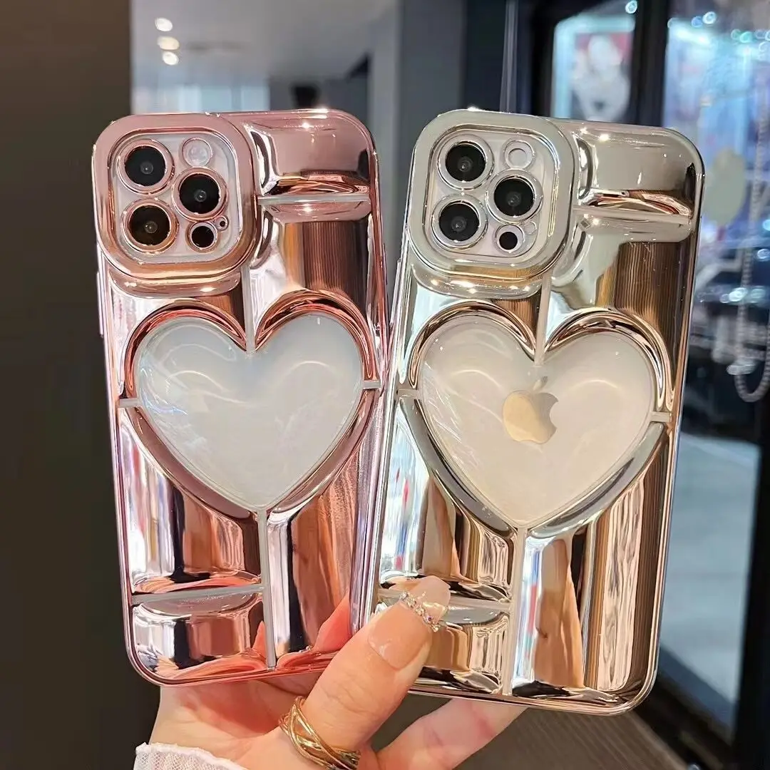 Comprar Funda galvanizada con forma de corazón de amor hueco para iPhone 11, 12, 13, 14 Pro Max 14 Plus, funda de lujo de silicona suave a prueba de golpes para iPhone 14Pro