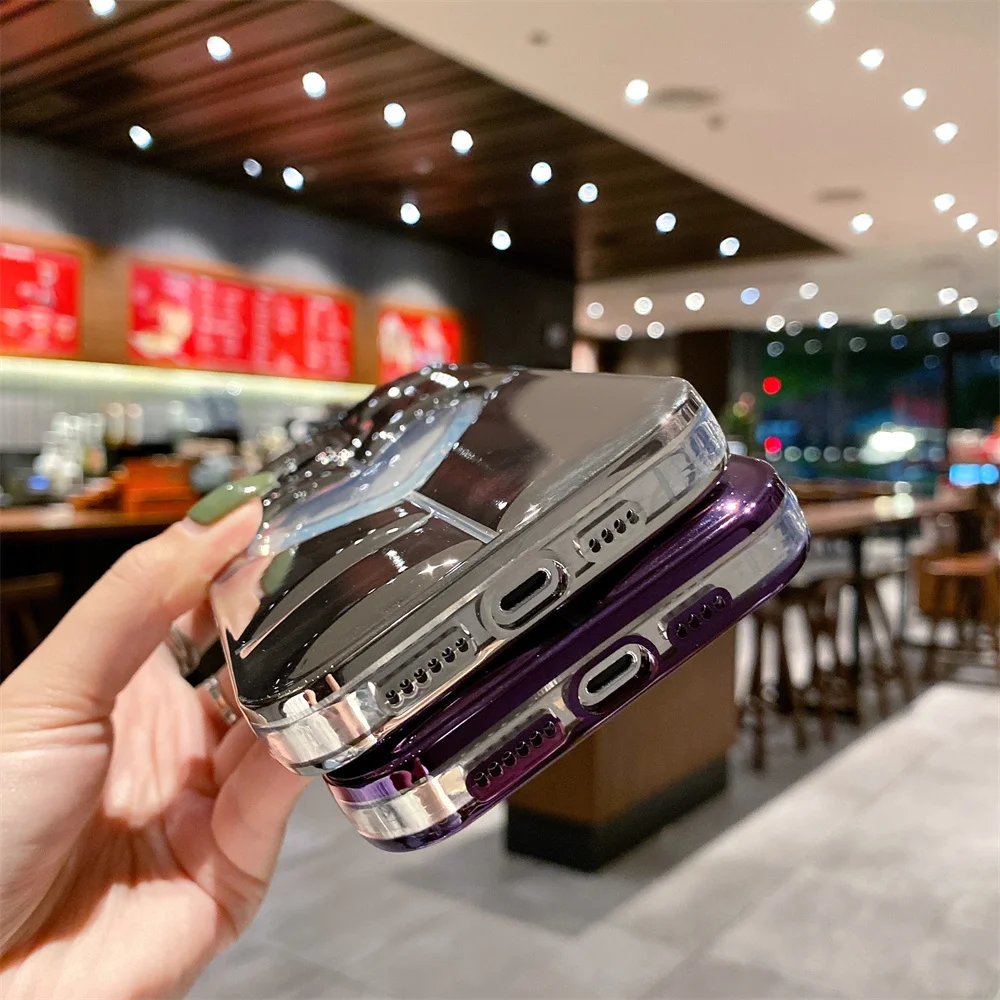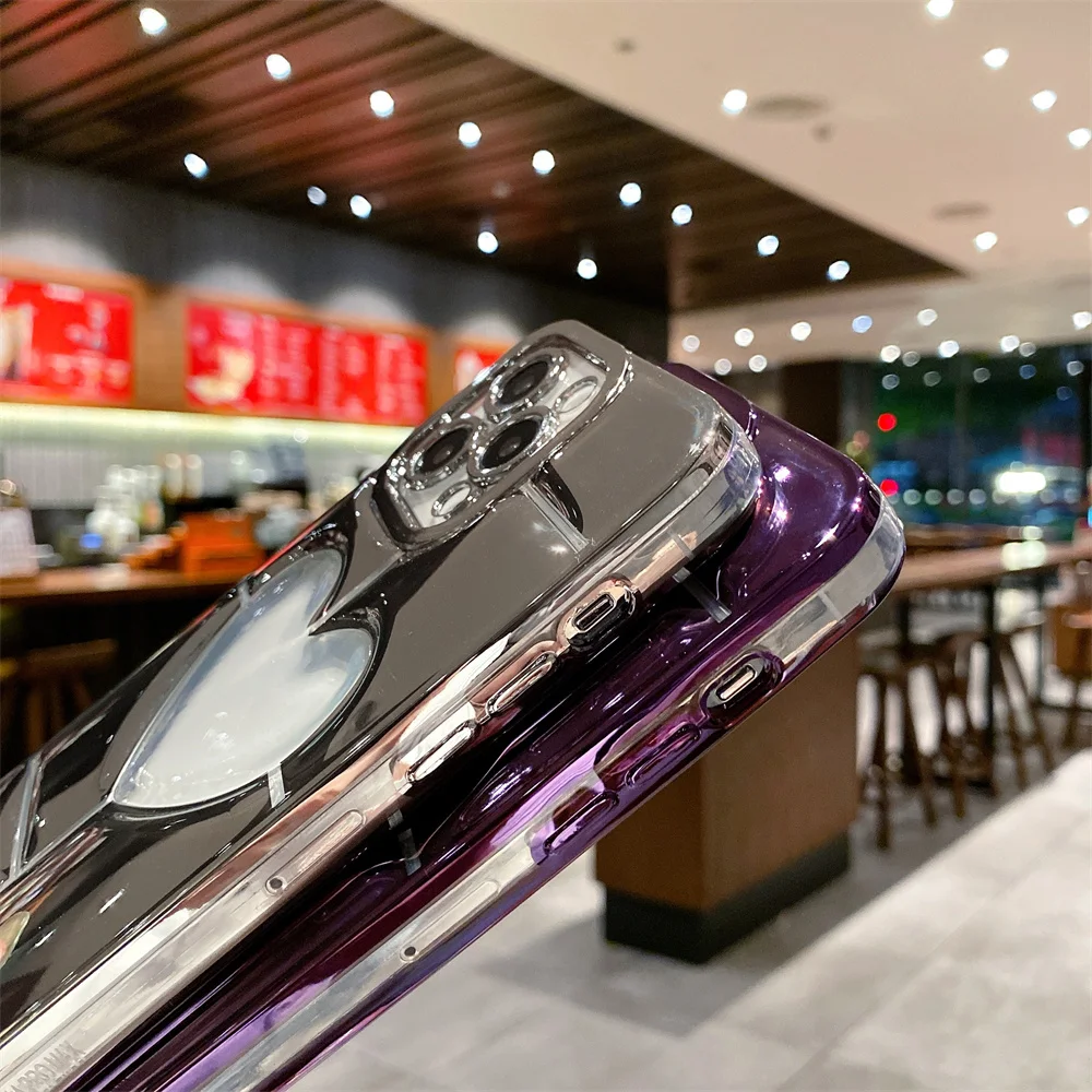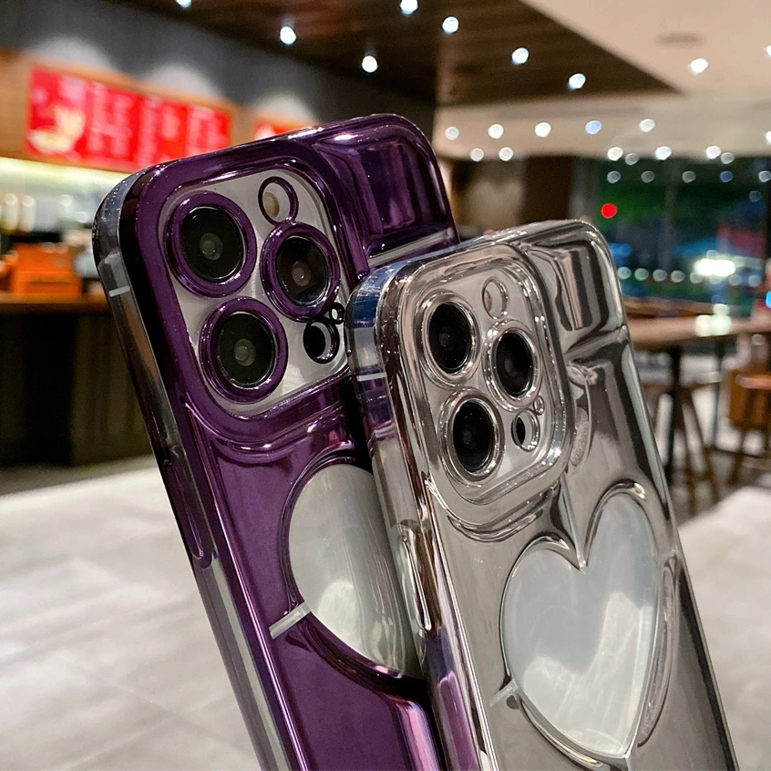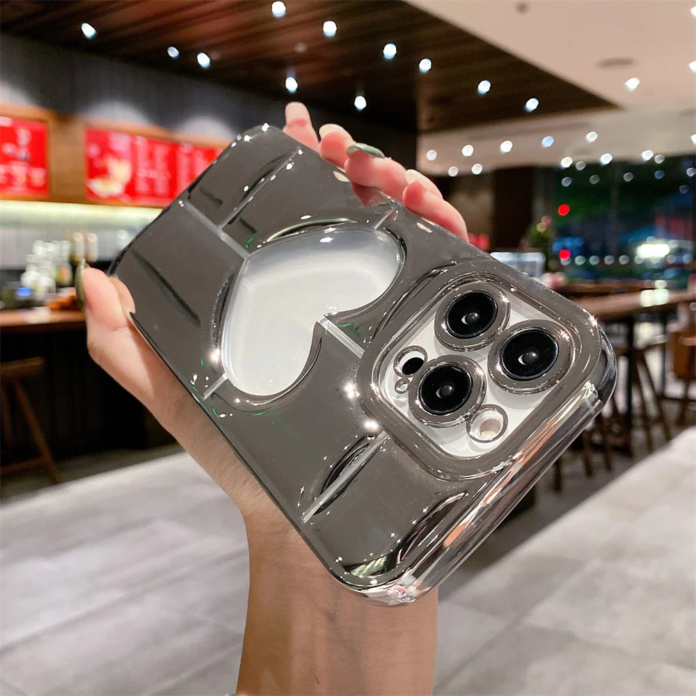 Comprar Funda galvanizada con forma de corazón de amor hueco para iPhone 11, 12, 13, 14 Pro Max 14 Plus, funda de lujo de silicona suave a prueba de golpes para iPhone 14Pro
