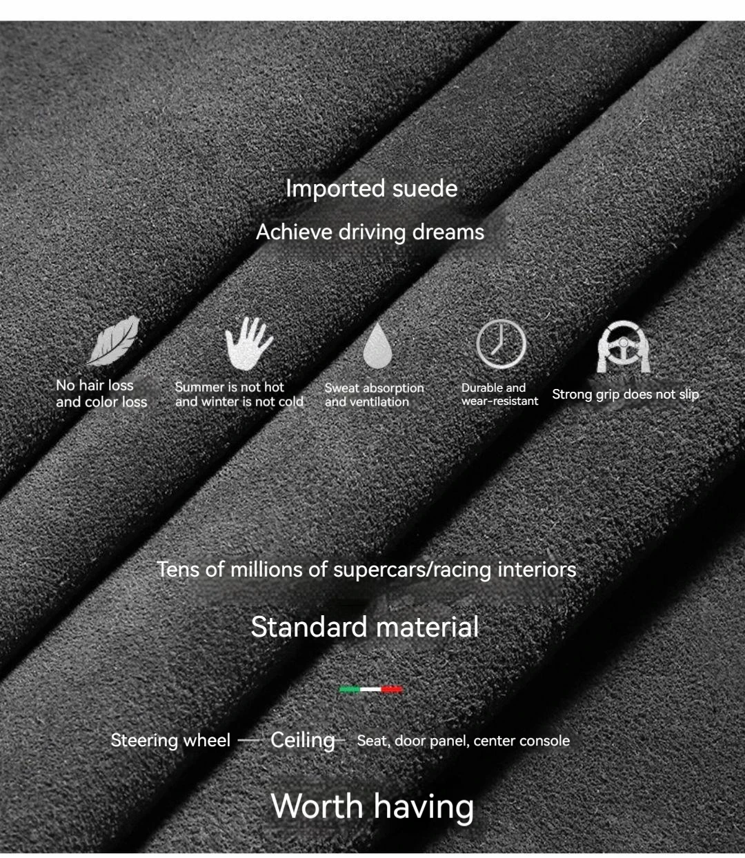 Alcantara Touch Ante-Tela de gamuza suave de alta calidad con un toque delicado que es resistente al sudor y a la suciedad y fácil de cuidar con una toalla húmeda.