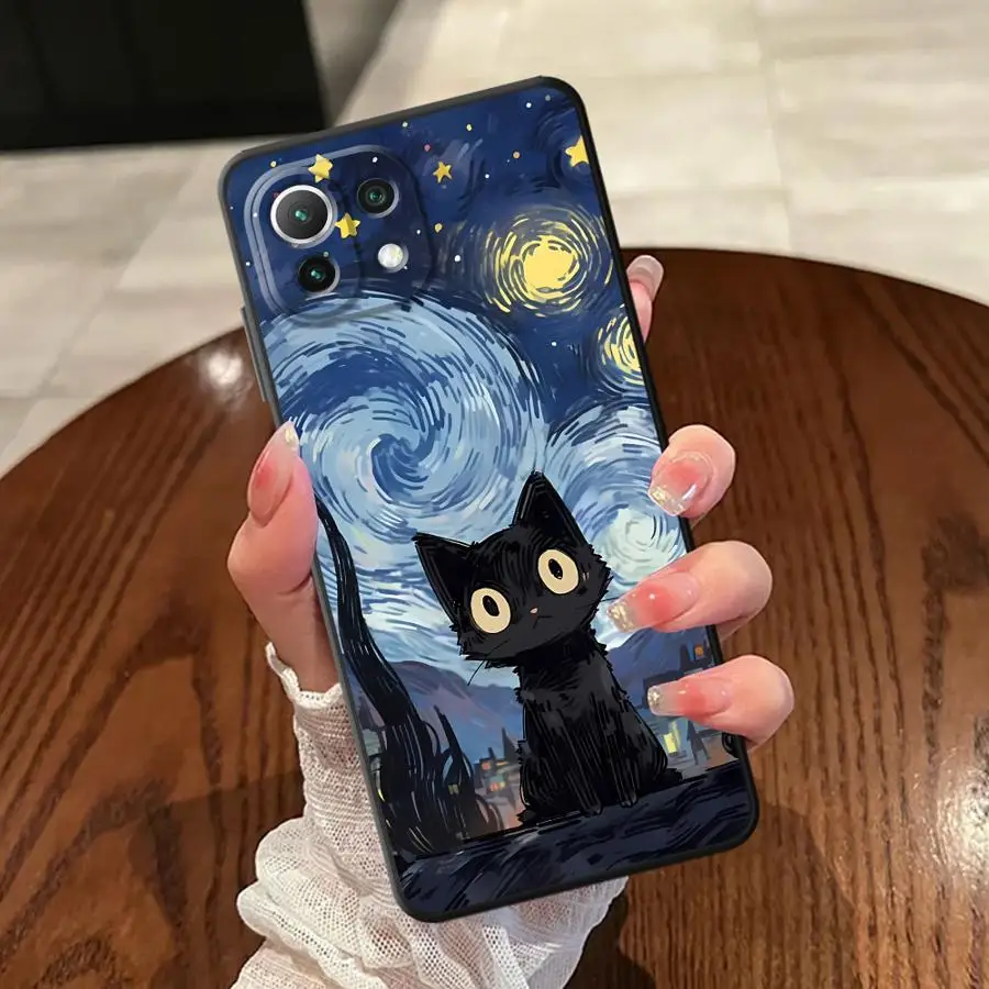 Funda de gato cielo estrellado para Xiaomi Mi 11 12 13 Lite 10T 11T 12T Pro 13 14 15 Pro 12X funda de teléfono suave negra