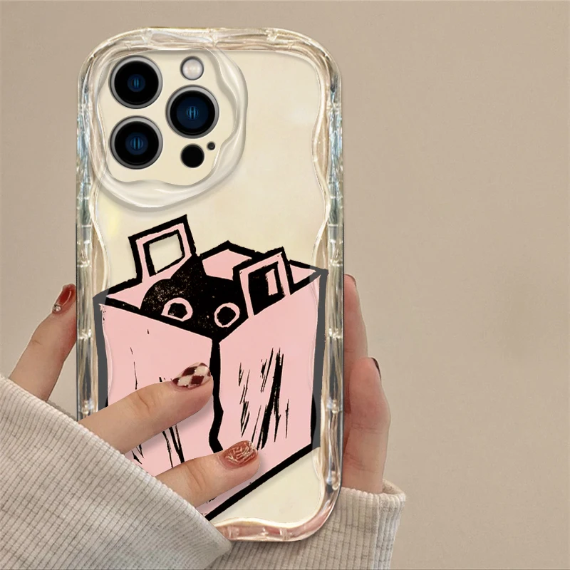 Comprar Funda de gato de tinta de dibujos animados para Apple iPhone 15, 14, 13, 12, 11 Pro, X, XR, XS, Max Plus, 8, 7 Plus, SE Wave, funda de teléfono de aceite