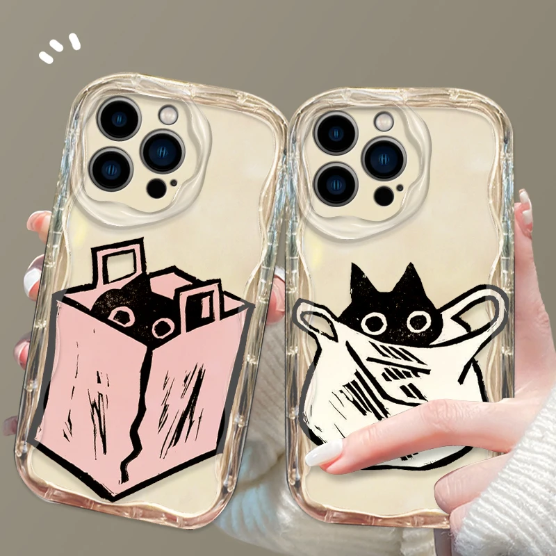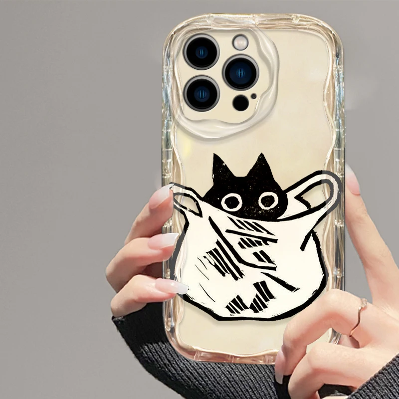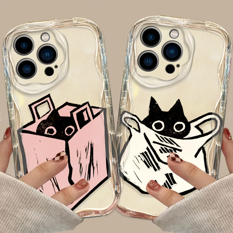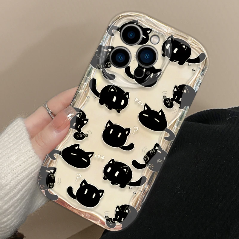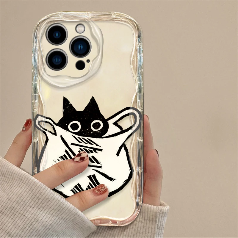 Funda de gato de tinta de dibujos animados para Apple iPhone 15, 14, 13, 12, 11 Pro, X, XR, XS, Max Plus, 8, 7 Plus, SE Wave, funda de teléfono de aceite