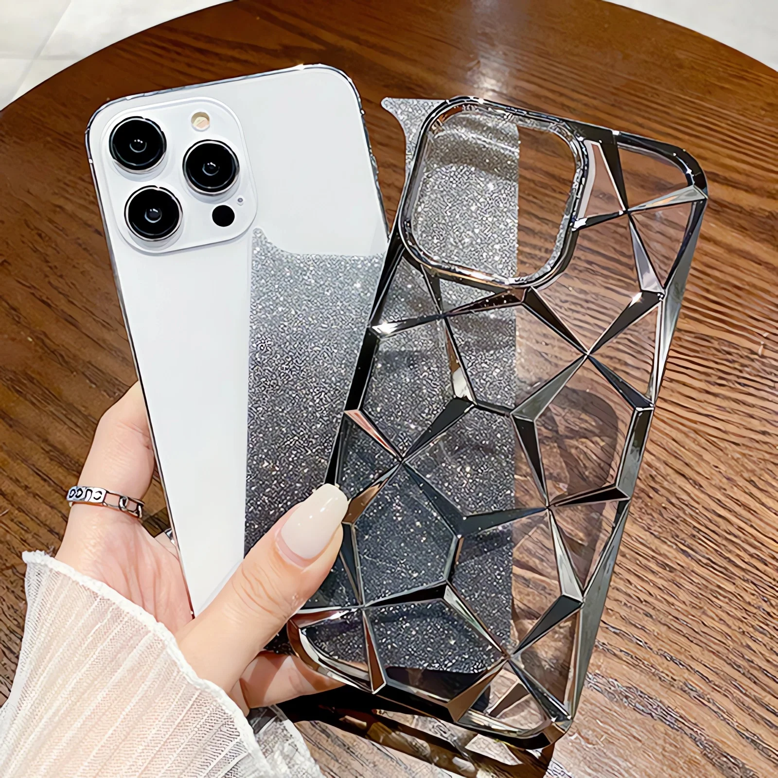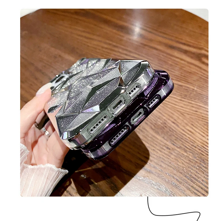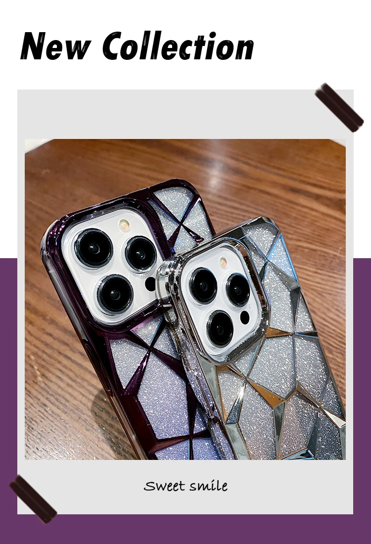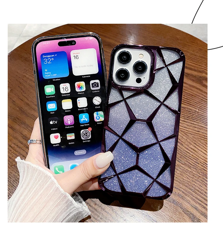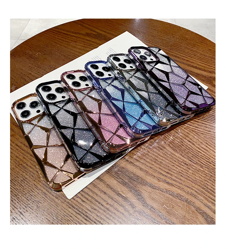 Comprar Funda geométrica transparente con purpurina para iPhone 15 Pro Max 11 12 13 14 Pro Max 14 15 Plus, cubierta de silicona suave chapada de lujo a prueba de golpes