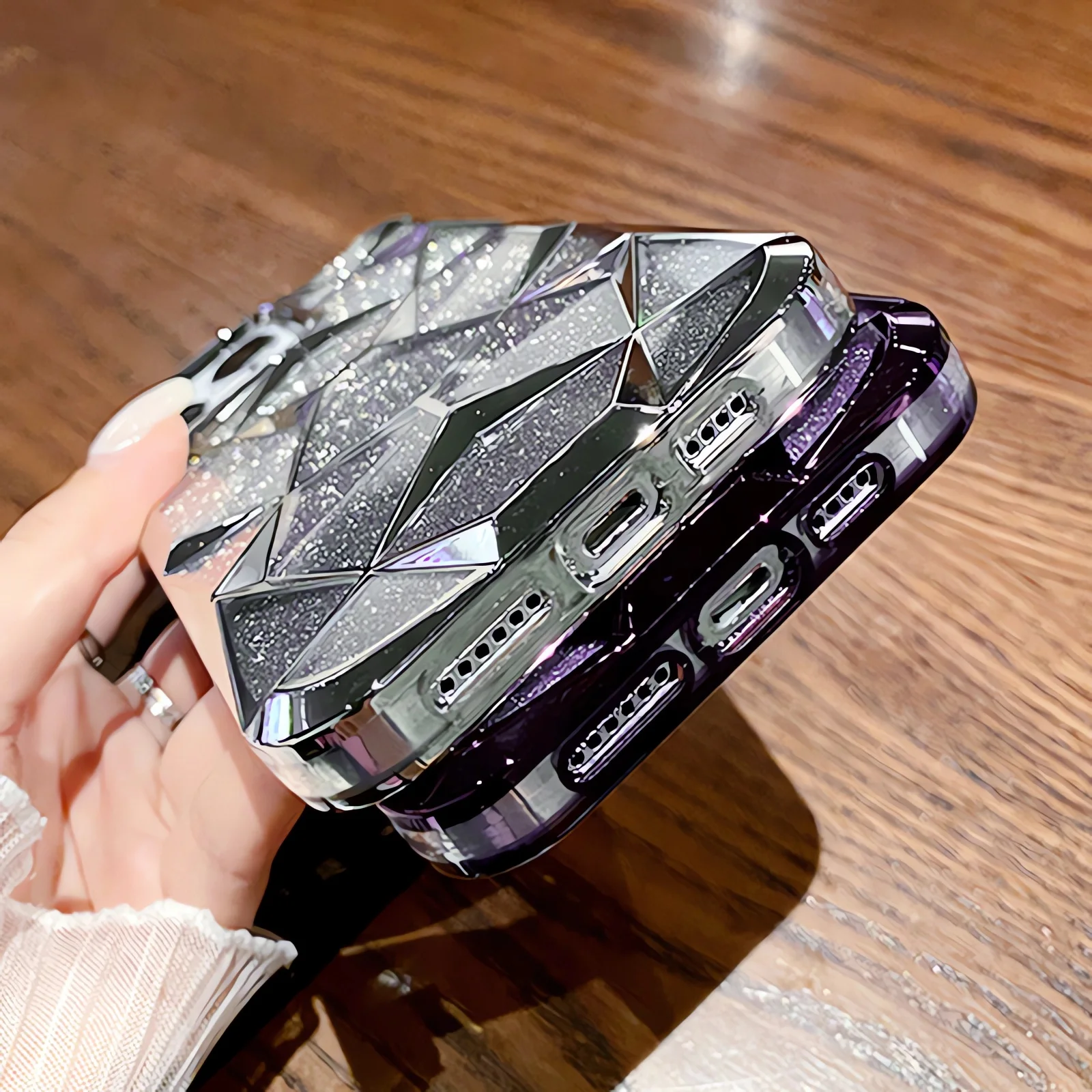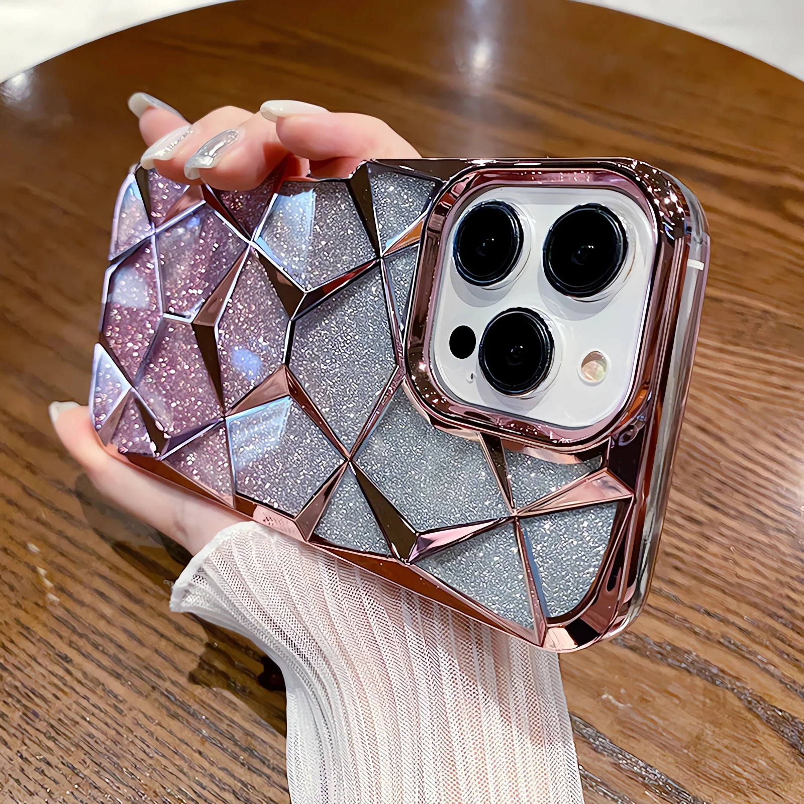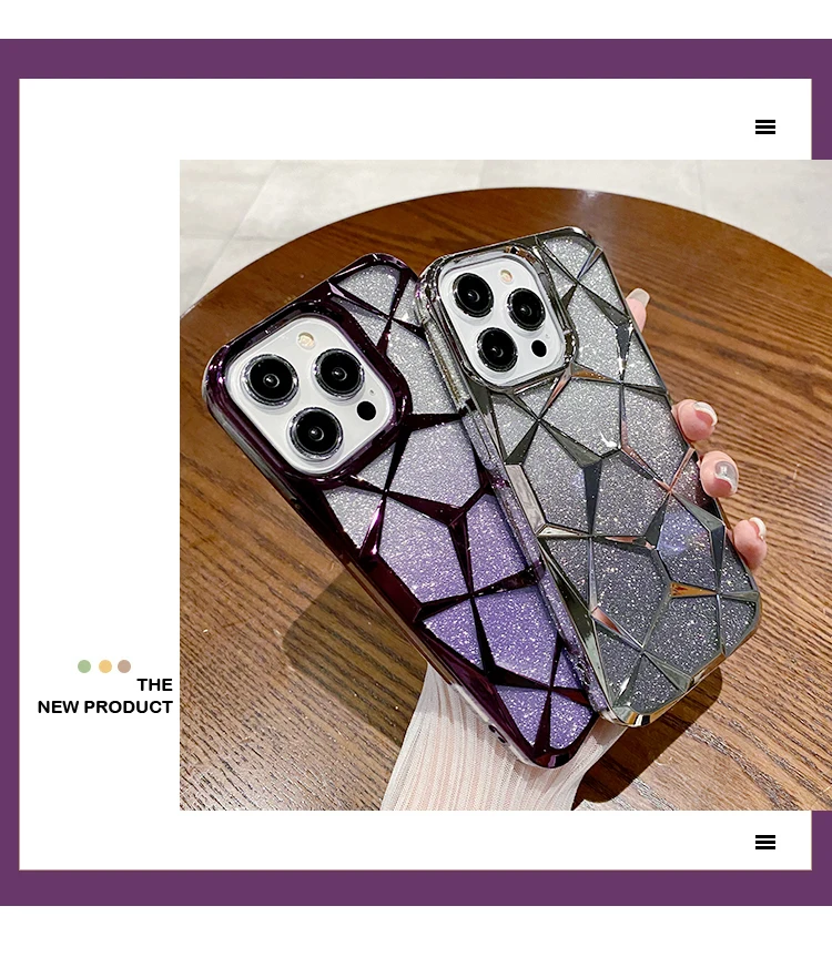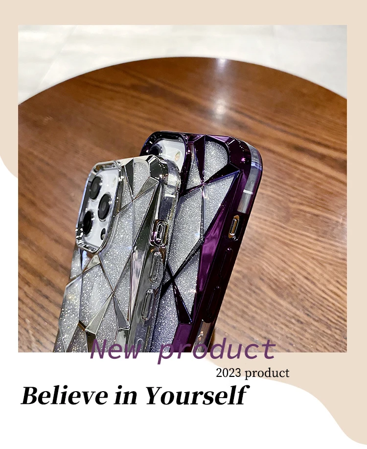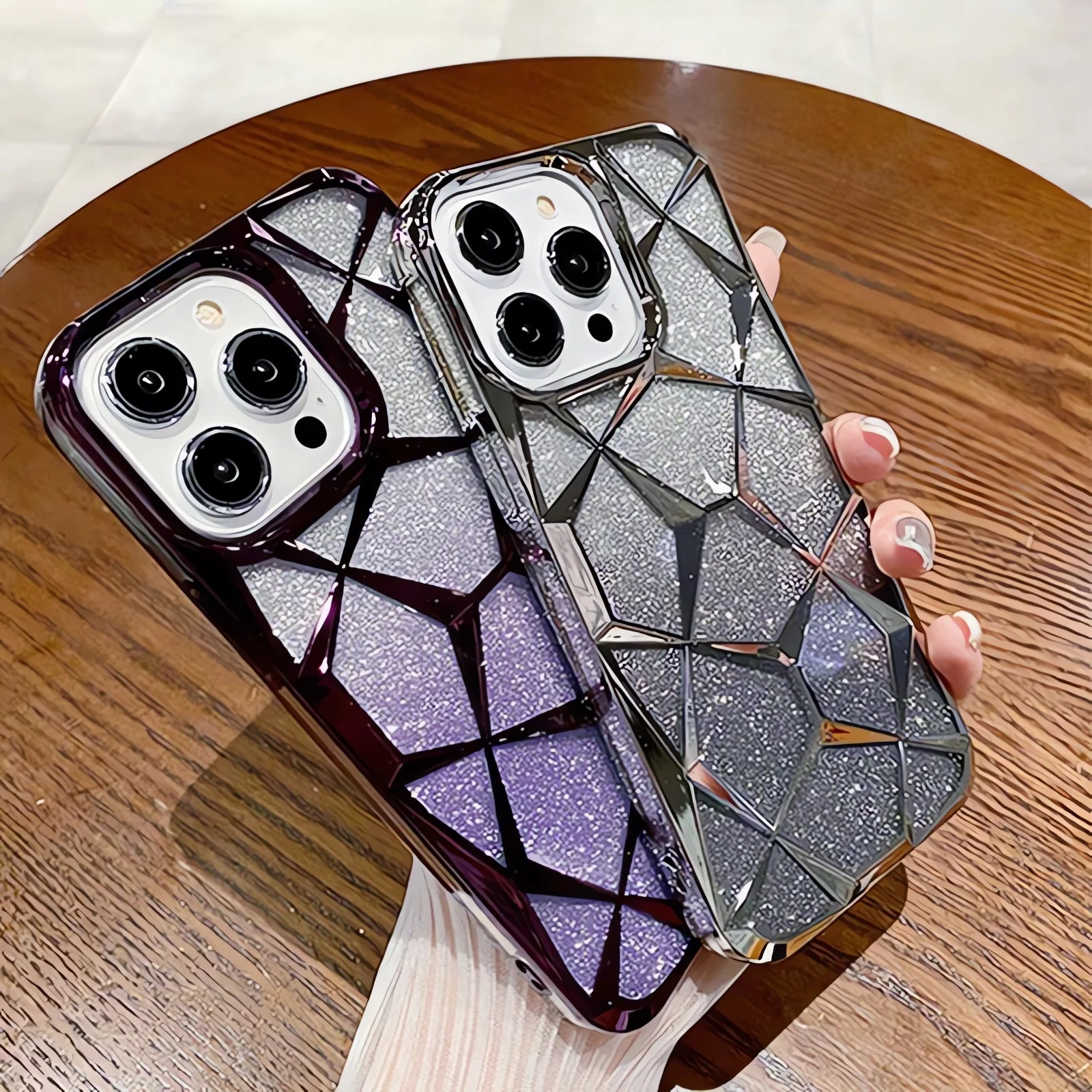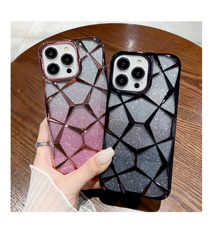 Funda geométrica transparente con purpurina para iPhone 15 Pro Max 11 12 13 14 Pro Max 14 15 Plus, cubierta de silicona suave chapada de lujo a prueba de golpes