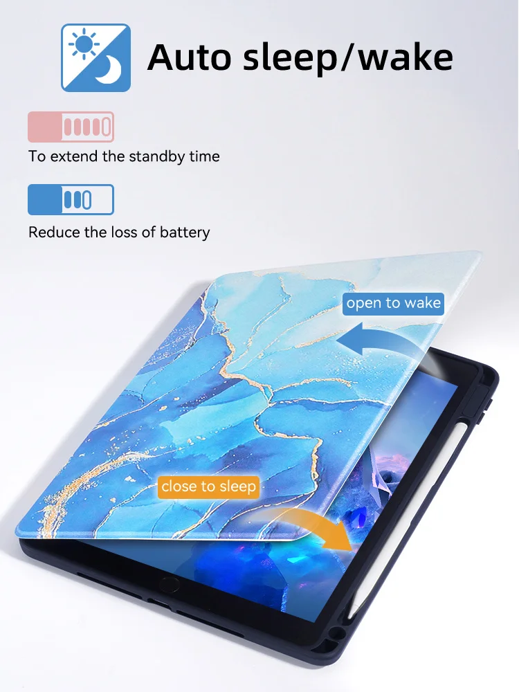 【Auto Wake/Sleep】Built-in magnetic stripe provides auto wake up and sleep function to save battery life.