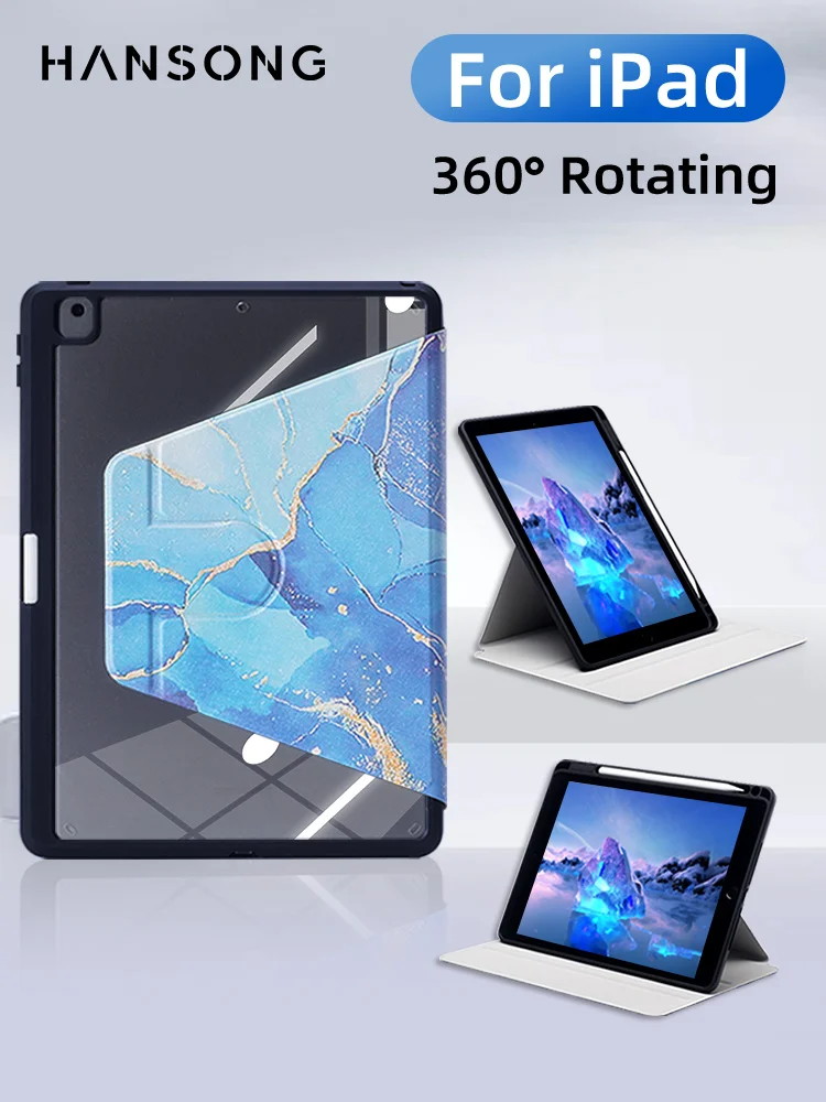 【Perfect compatibility】Rotating Case Compatible For iPad Air 5 For 2021 iPad Pro 11 Air 4 10.9 Stand Cover Pro 12.9 Mini 6 2019 10.2【Mixed transparent back case】Unique marble pattern, smudge-proof and washable. The crystal clear hard PC back with TPU frame protects your tablet from scratches and bumps, providing full body protection for your new iPad.【360 Degree Swivel】This 10.9-inch iPad case swivels vertically and horizontally, and the non-slip lining material and grooves stabilize multiple stand angles for the most comfortable viewing or typing.【Built-in Pencil Holder】Pencil is not included! Pencil holder is provided to hold the pencil well, convenient for you to carry and use the Apple Pencil at any time.